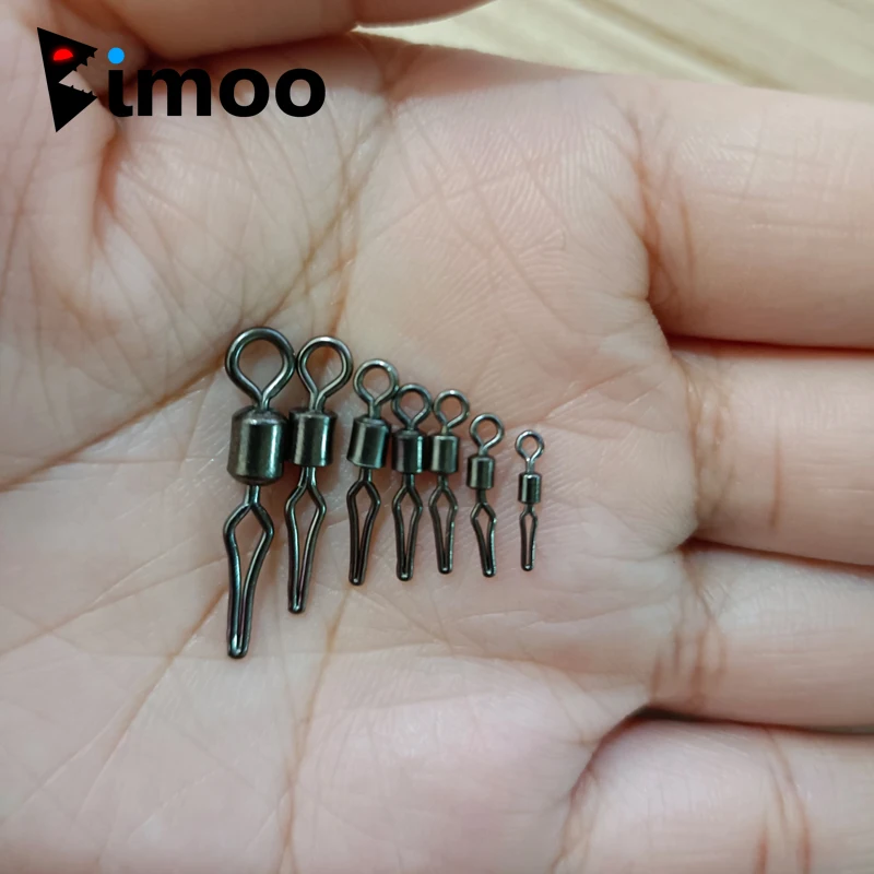 Bimoo 500/1000 piezas 360° Giratorio con Clip de línea lateral, conector de anzuelo de pesca giratorio, accesorios de pesca de agua salada, tamaño 2 -12