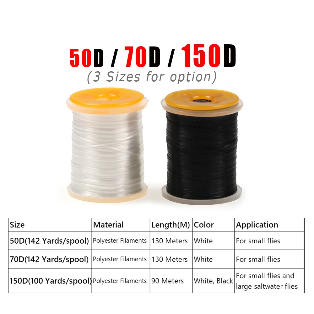 Bimoo 50D 70D 150D Fly Tying Thread Polyester Filaments Thread Trout Bass Pike Saltwater Flies Exclusive-use White Black