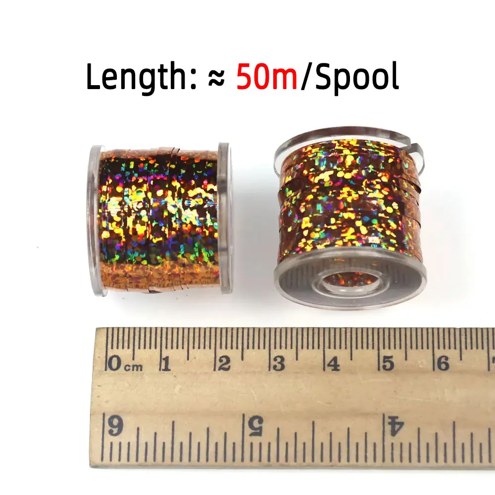 Bimoo 50m/Spool 0.5mm - 2.5mm Fly Tying Tinsel Flash Tape Pearl Holographic Streamer Teaser Fly Tying Material