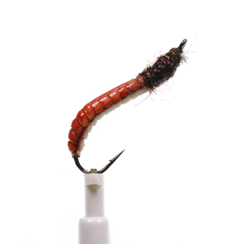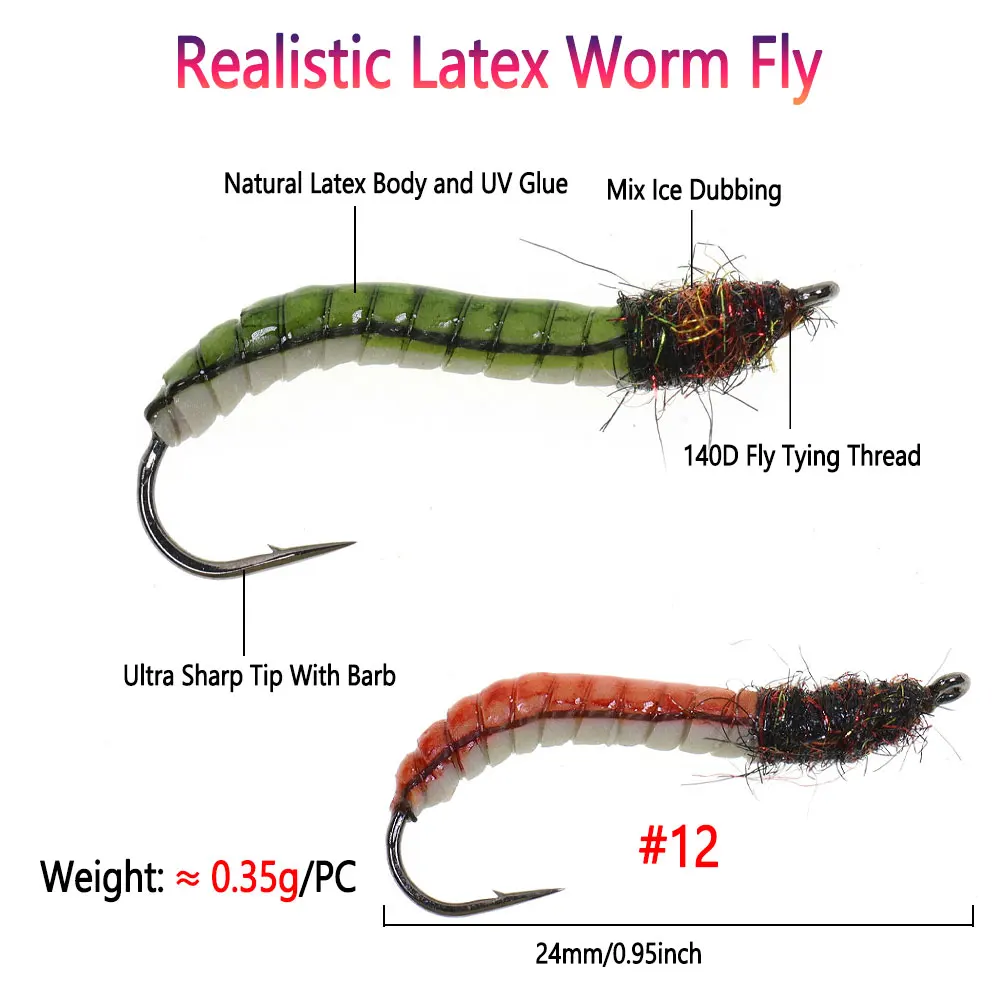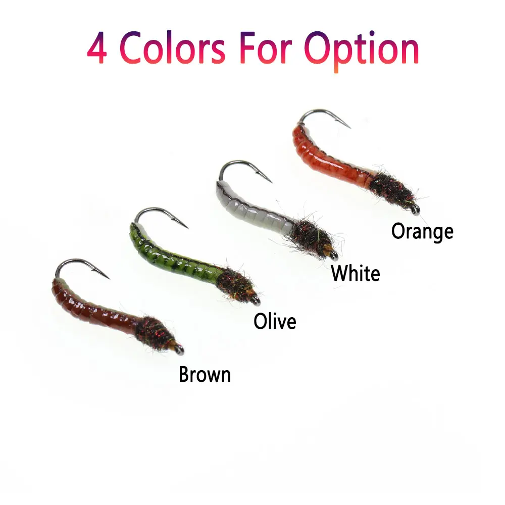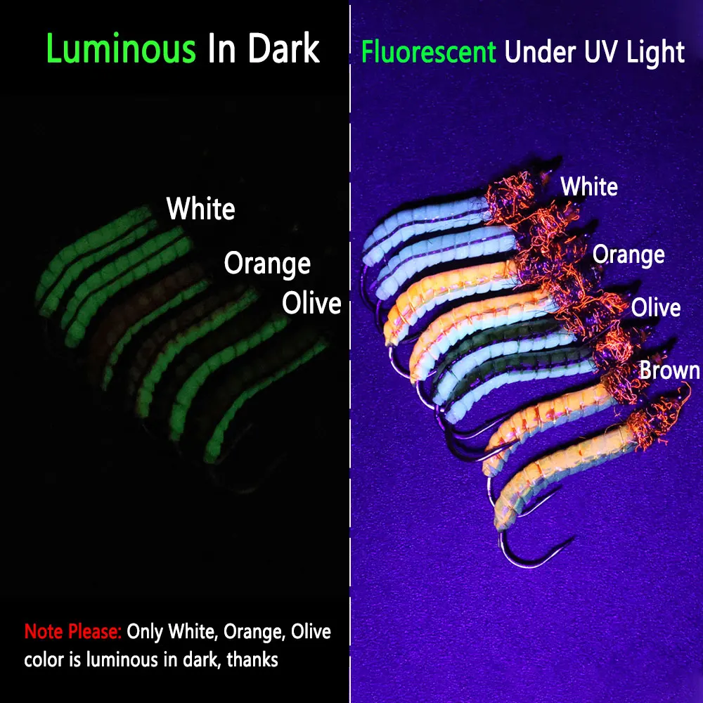 Bimoo 6/8 piezas#12 luminosos y UV látex gusano mosca cuerpo epoxi señuelo larva Artificial para trucha Grayling lubina panfish Señuelos de pesca