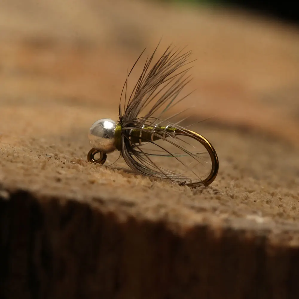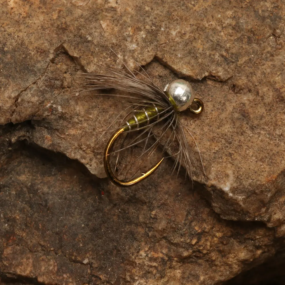-Tied on a barb, jig-pattern hook with a tungsten bead to give extra weight to the fly.