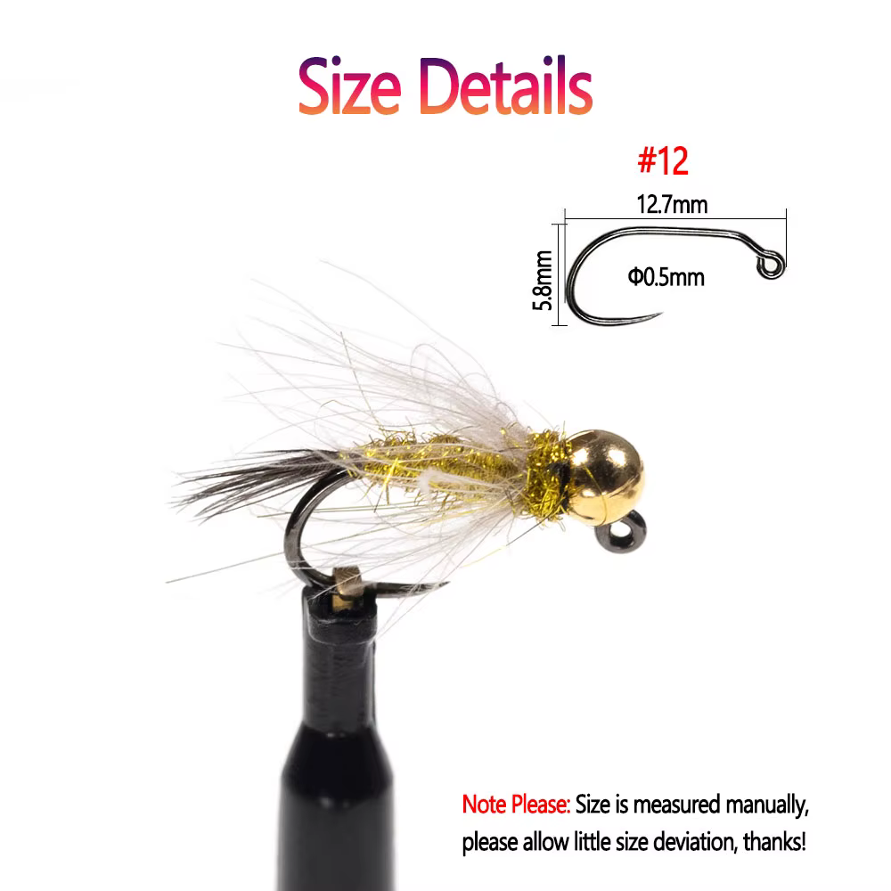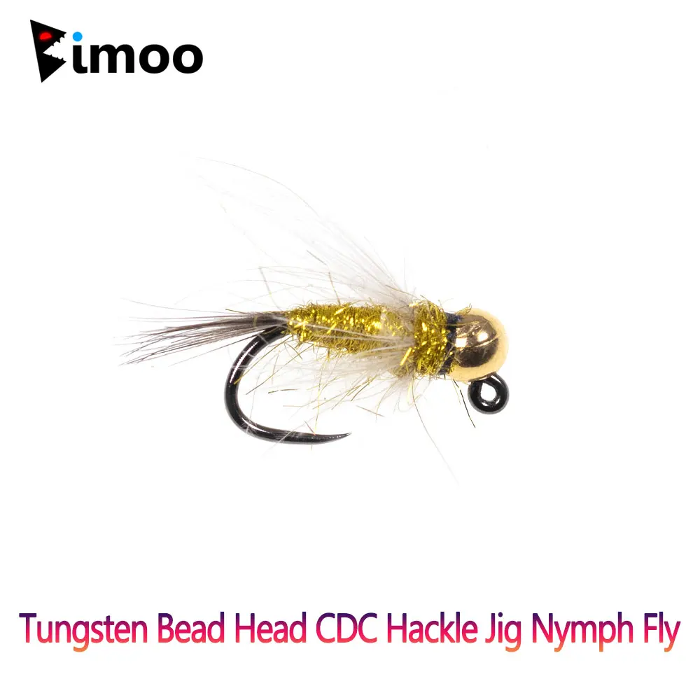 Bimoo-Señuelos de Pesca de Trucha, Cabeza de Cuentas de Tungsteno CDC Hackle Jig, Ninfa Mosca, Cola de Faisán, Hundimiento Rápido, 6, #12, Euro, Ninfa, Hackle