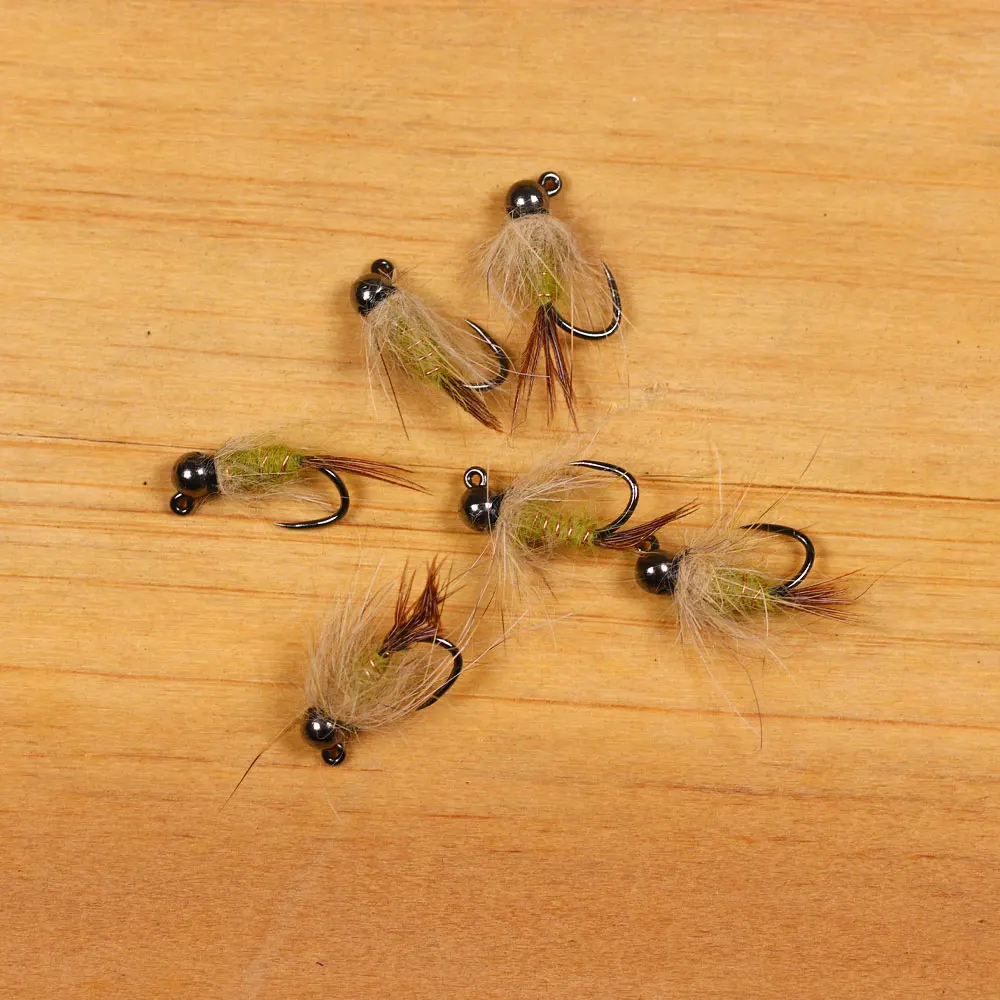 Bimoo 6 piezas#14 Jig Bead Head Hare's Ear Jig Nymph Fly Barbless A hundimiento rápido Euro húmedo Ninfa mosca trucha panfish Señuelos de pesca Cebos