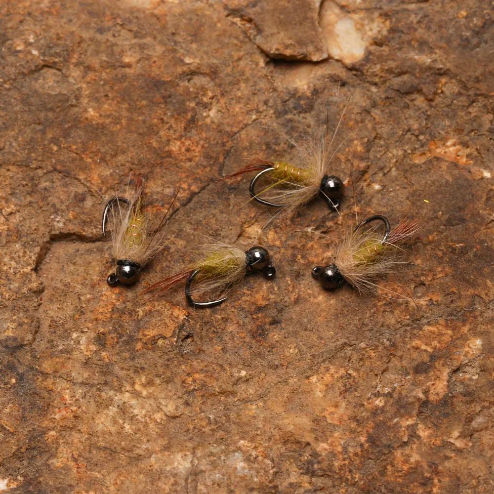 -Atado en un anzuelo de alta calidad, sin púas y con una cuenta de plantilla de color níquel blak para mayor peso.El anzuelo sin cebos Jig reduce el riesgo de enganchar la mosca en las rocas.