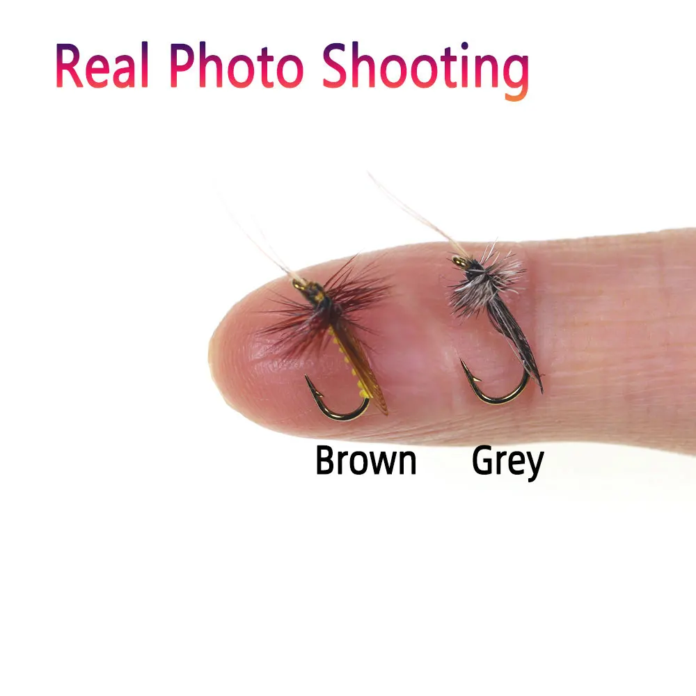 Bimoo 6 piezas#Señuelos de pesca de trucha, cebo Artificial para insectos con mosca seca, Hackle suave, marrón y gris, 14 Caddisfly Sedge