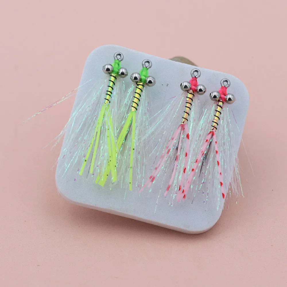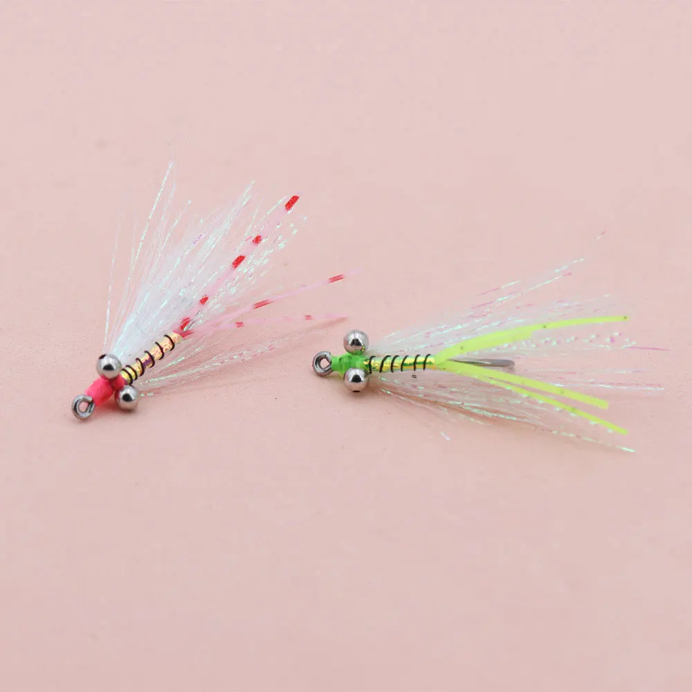 Bimoo 6 piezas#4 Ojos de cuentas de cadena Crazy Charlie Fly Barbed Fly Hook Quebido A hundimiento rápido Bajo Tarpon Señuelos de pesca de mar de agua dulce