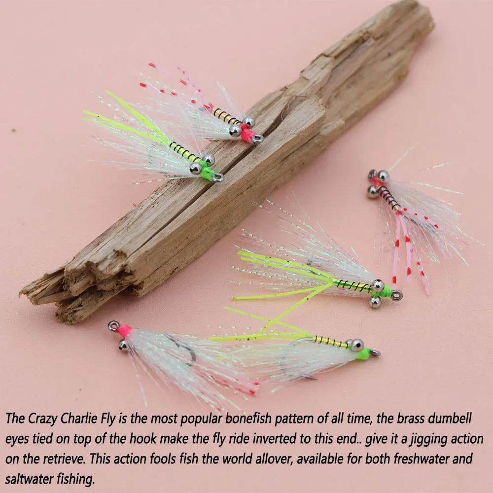 El Crazy Charlie Fly es el patrón de peces de hueso más popular de todos los tiempos, los ojos de latón atados en la parte superior del anzuelo hacen que la mosca se invertida hasta este final... le dan una acción de jigging en la recuperación.Esta acción pesca todo el mundo, disponible tanto para la pesca en agua dulce como en agua salada.