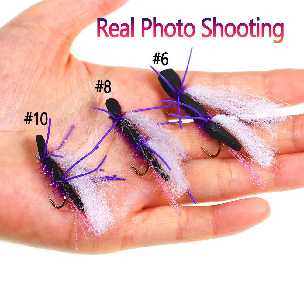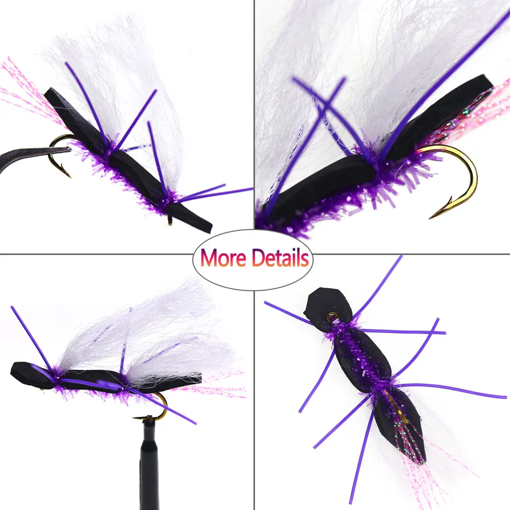 Bimoo 6 piezas#6#8#Señuelos de pesca de lubina, espuma flotante, topwater, saltamontes, mosca seca, trucha, lubina, blanco, morado, 10