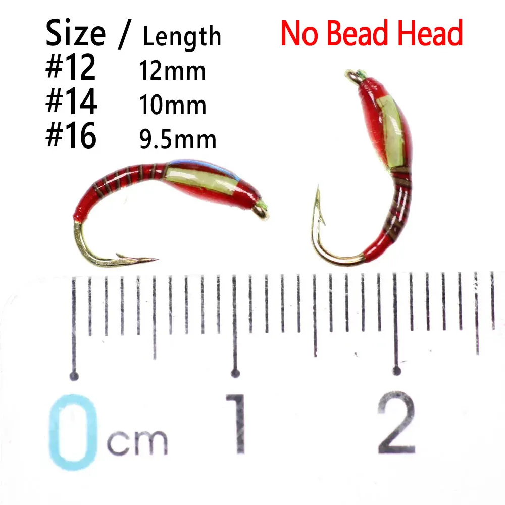Bimoo 6 uds cuentas de latón sin cuentas cabeza pavo real herl zumbador Midge ninfa mosca larvea cebo de pesca en hielo plantillas ninfa señuelo de pesca de trucha