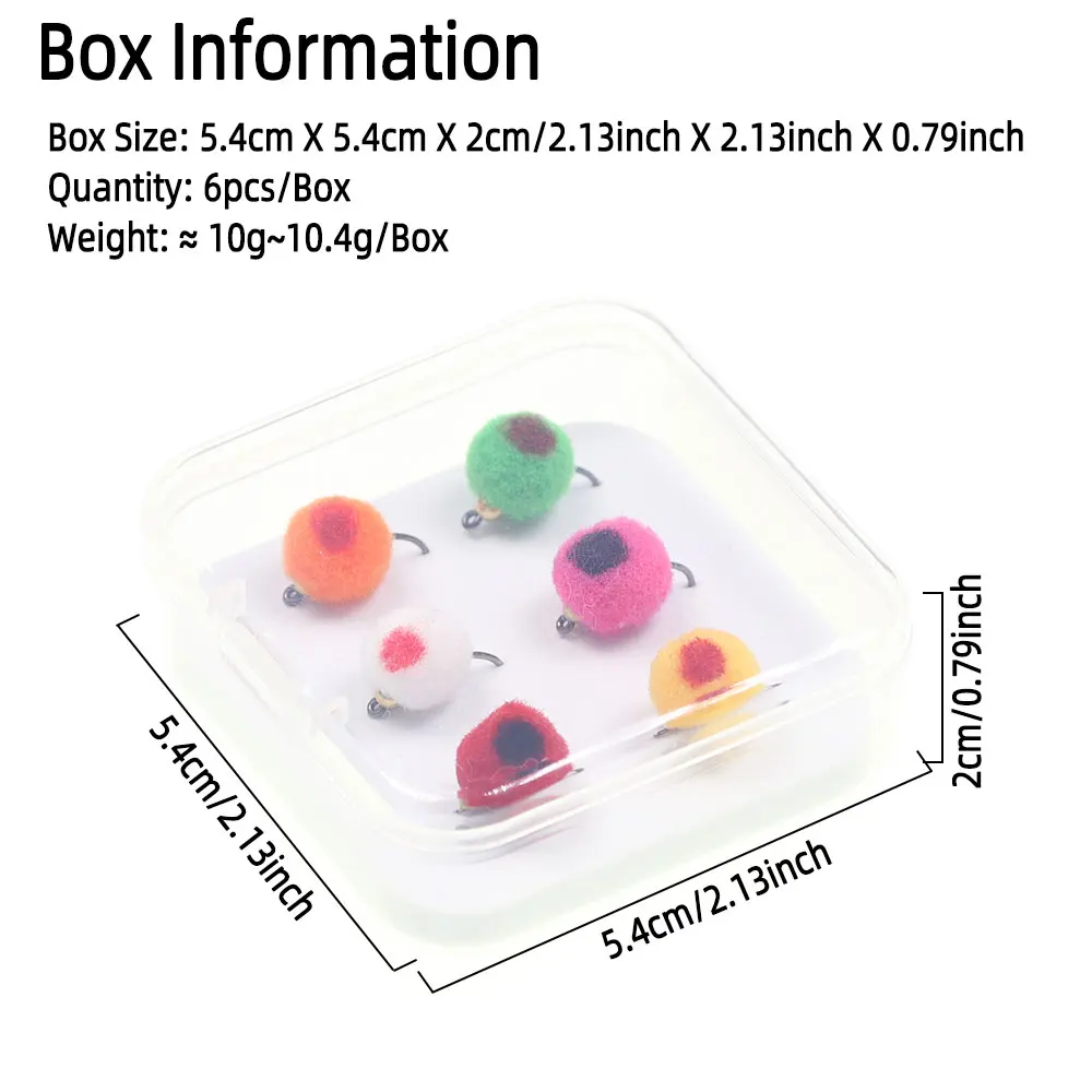 Bimoo 6 uds cabeza de cuentas de latón Glo Bug salmón huevo mosca fregadero rápido moscas húmedas salmón pez cerdo cebo trucha salmón Grayling Señuelos de pesca