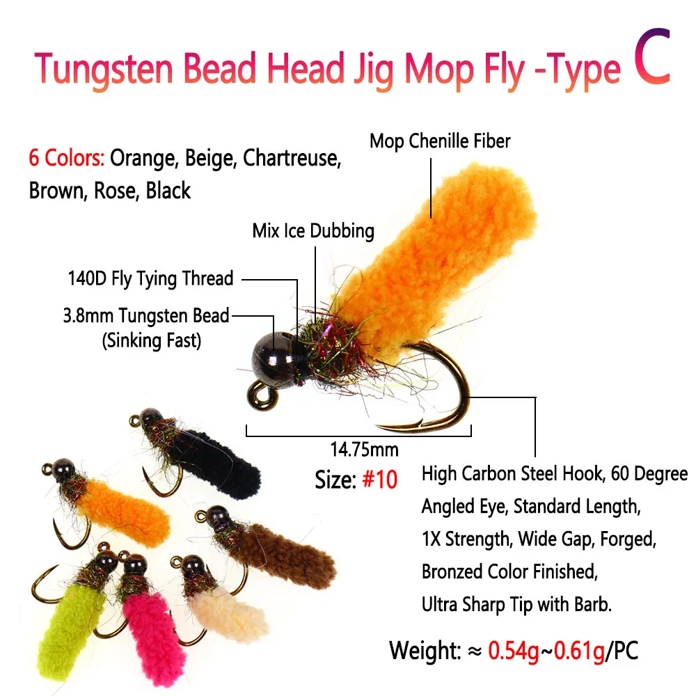 -Tipo C-Cabeza de cuentas de tungsteno Jig Mop Fly-