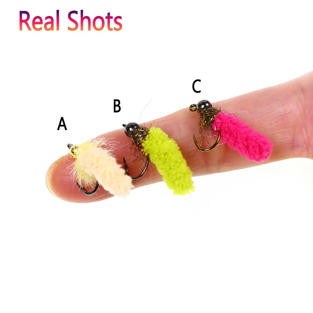 Bimoo 6 uds latón/cabeza de cuentas de tungsteno fregona mosca grúa Artificial mosca Caddis larva jig húmedo ninfa mosca trucha Grayling Señuelos de pesca
