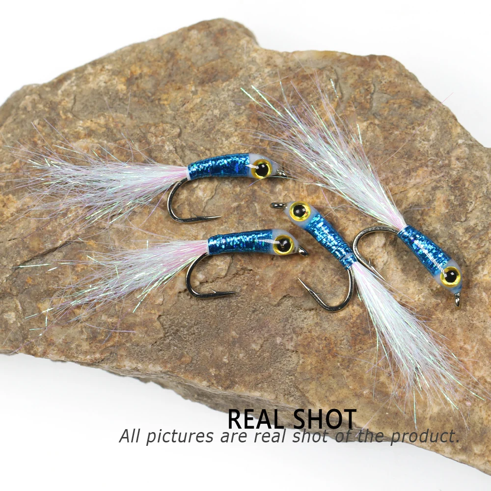 Bimoo 6 uds 3D ojos de pez blanco doblaje de hielo epoxi Minnow Streamers mosca para lubina trucha agua de mar pesca de agua dulce moscas señuelo cebos