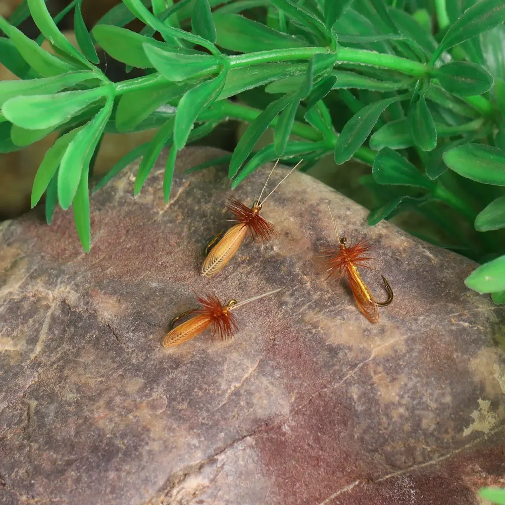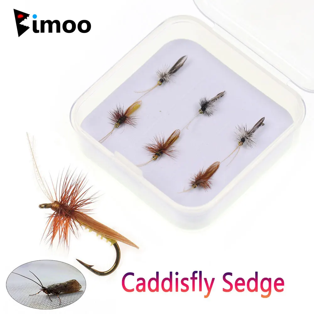 Bimoo 6pcs/Box #14 Caddisfly Sedge Adult Brown Soft Hackle Dry Fly Artificial Insect Bait Trout Fishing Lures
