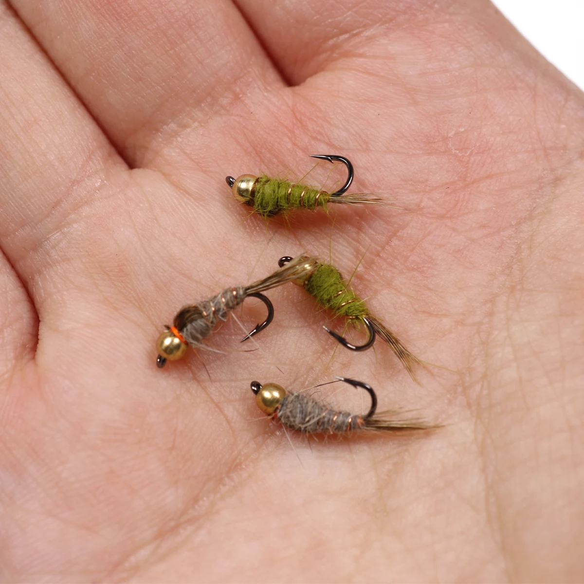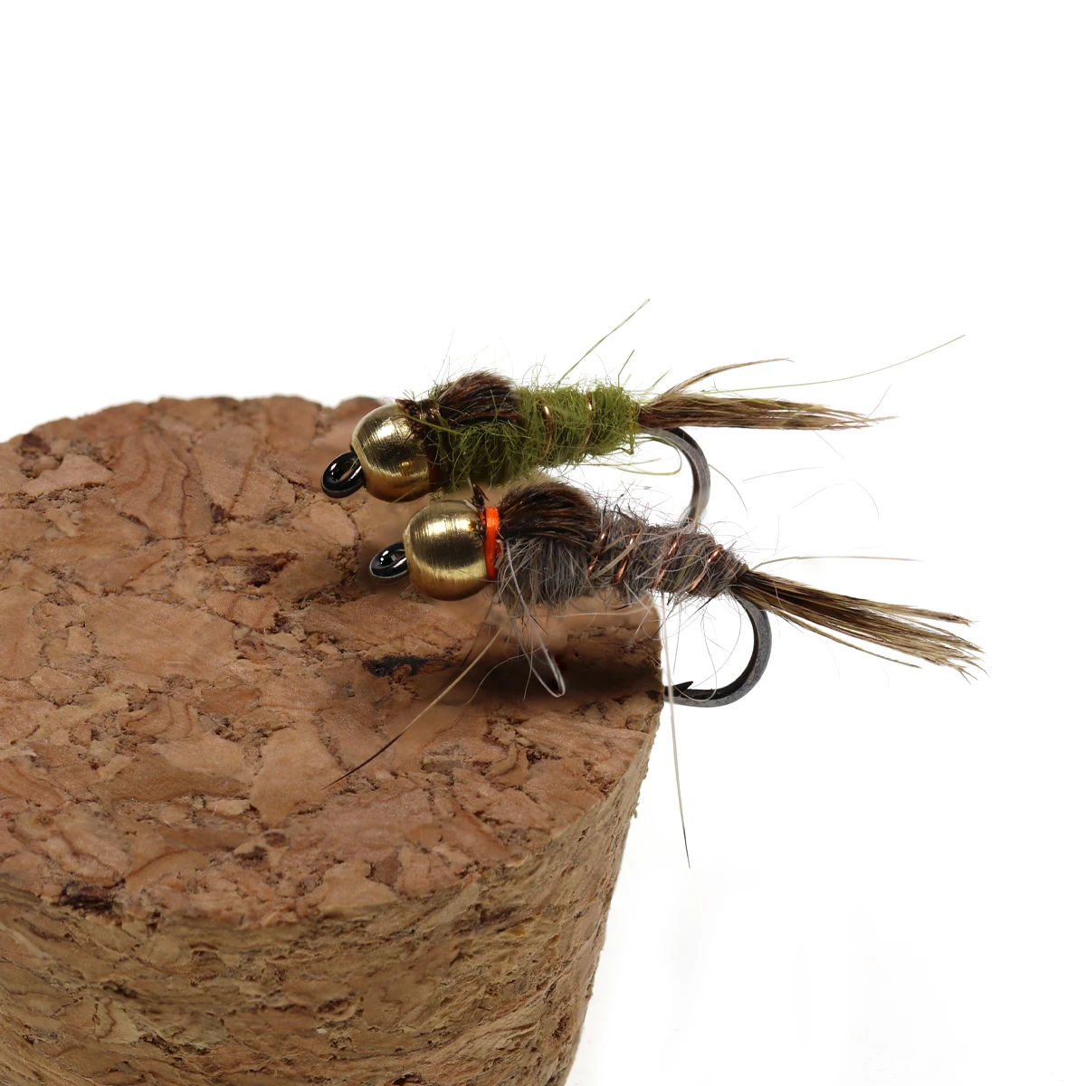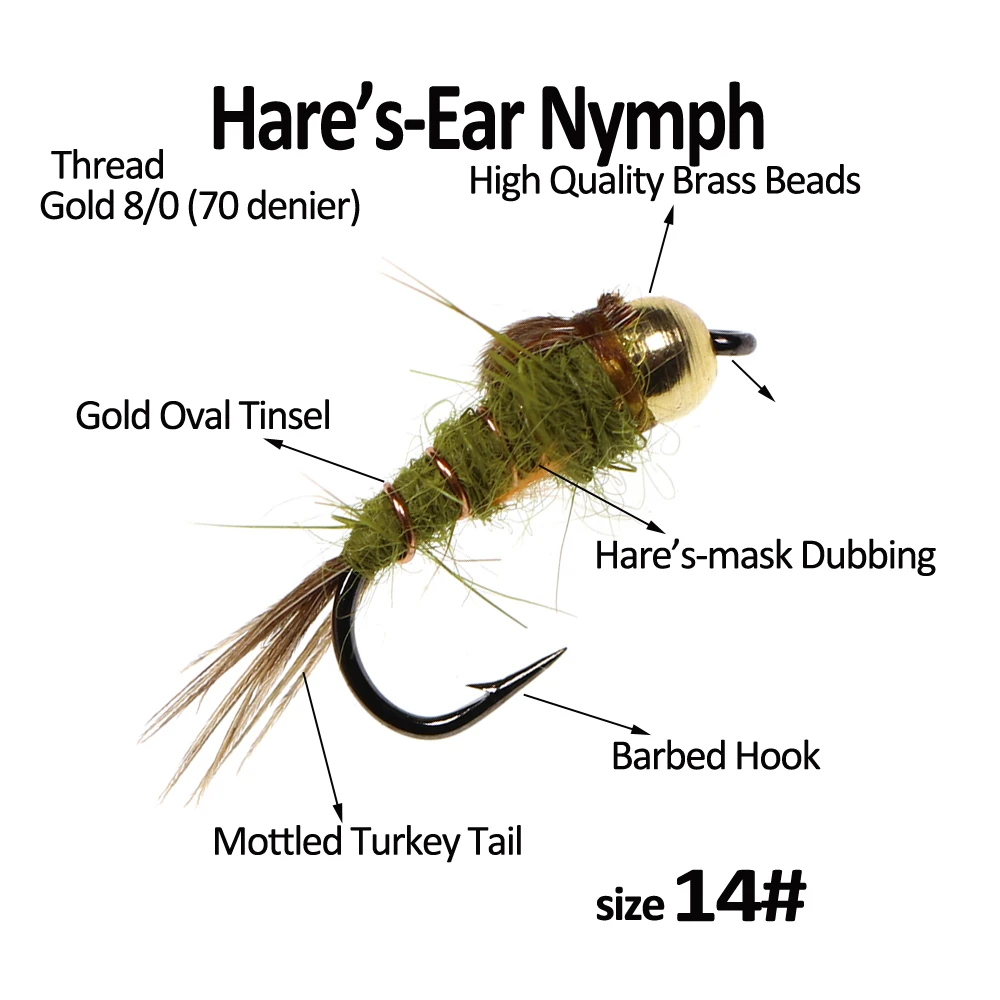 Bimoo 6 unids/lote#14 Cabeza de cuentas de latón ninfa de oreja de Hare arcoíris marrón trucha tuarro Greyling ninfa señuelos moscas de pesca