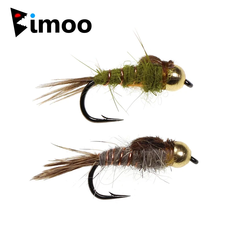 Bimoo 6 unids/lote#14 Cabeza de cuentas de latón ninfa de oreja de Hare arcoíris marrón trucha tuarro Greyling ninfa señuelos moscas de pesca