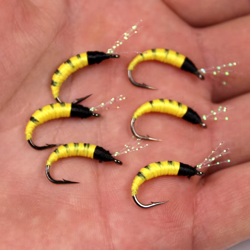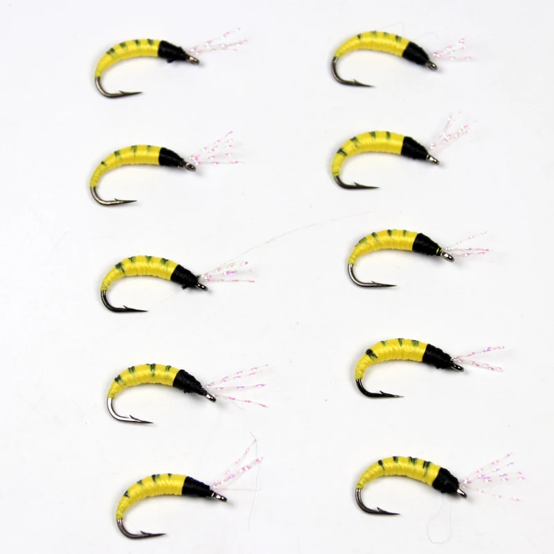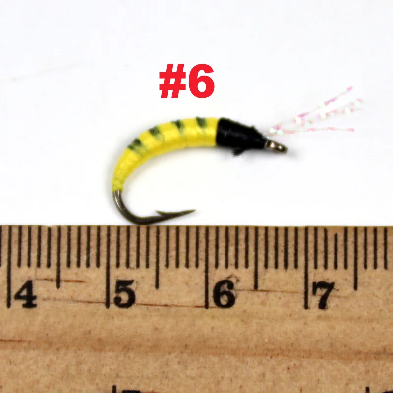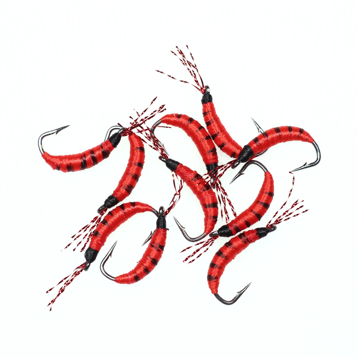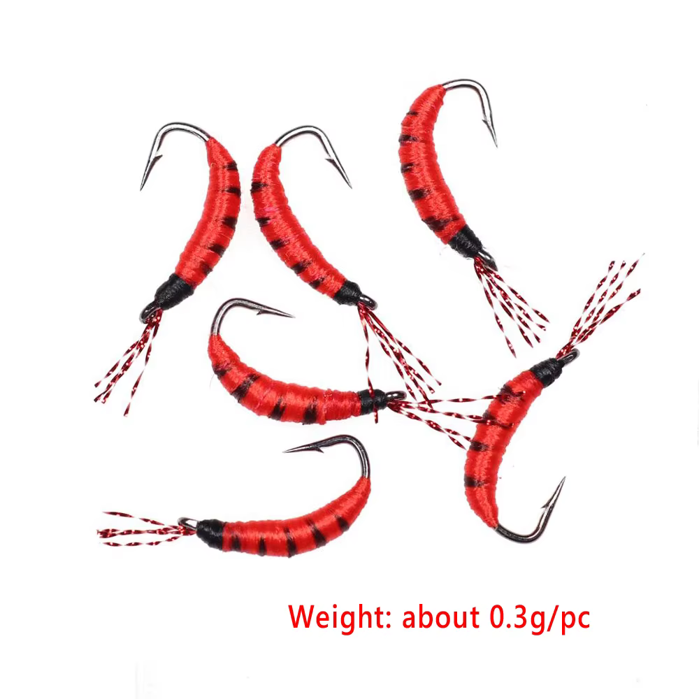 Bimoo 6PCS/Lot #6 Rainbow Brown Brook Trout Greyling Caddis Nymph Lures Buzzers Red Miracle Midge Fishing Flies