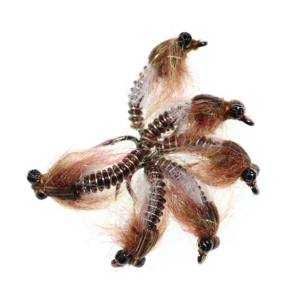 Bimoo 6 unids/lote#8 ninfas de libélula marrón mosca de pesca para trucha lubina pez pan moscas señuelo con ojos de plástico negro