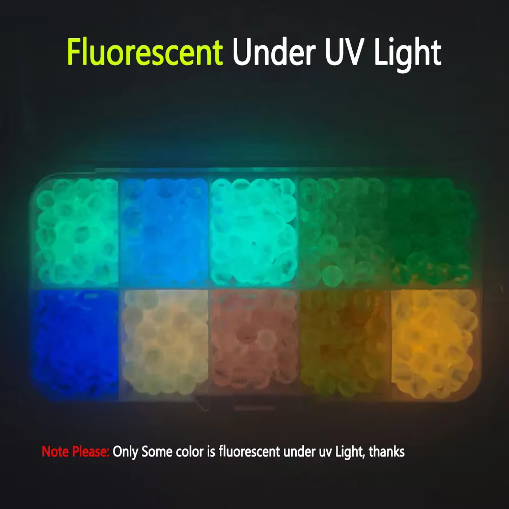 -Hay algunos colores que brillan en la oscuridad. Estas cuentas de pesca serán un éxito para trucha, tipo de pez, leucomas y perca en la oscuridad.