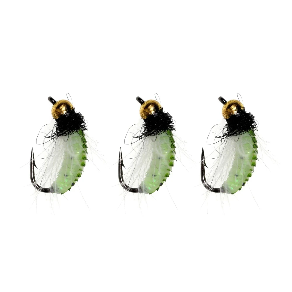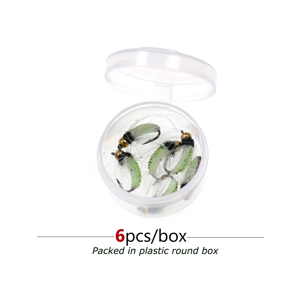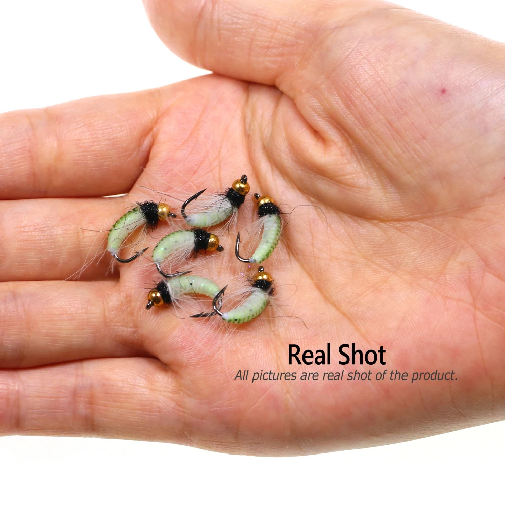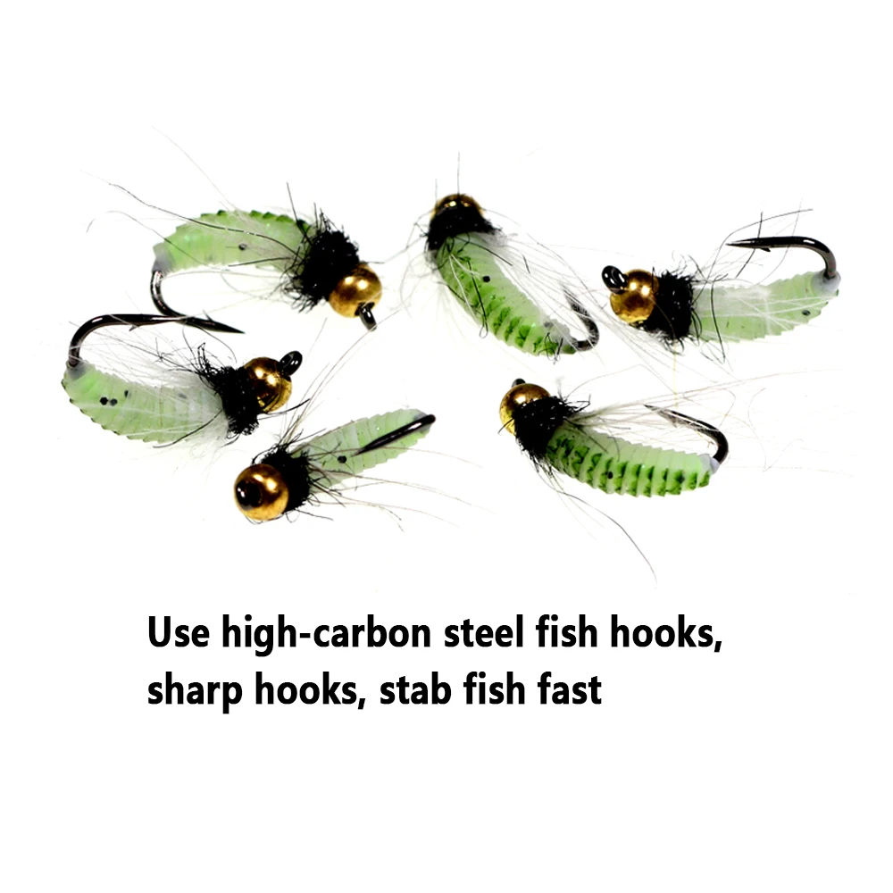 Bimoo 6 uds.#10#12 CDC pluma Hackle ninfa Scud mosca UV cuentas de latón insecto húmedo gusano trucha pesca mosca cebo señuelo hundimiento rápido