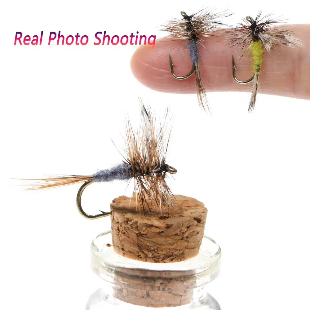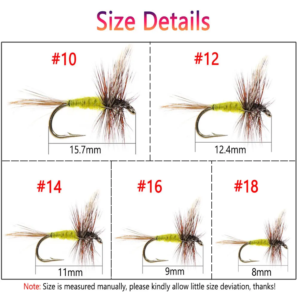 Bimoo 6 uds.#10~#18 Grizzly Brown Hackle Adams Dry Fly Barbed Fly Hook May Fly Midge Fly Truta Señuelos de pesca Cebos Gris Amarillo