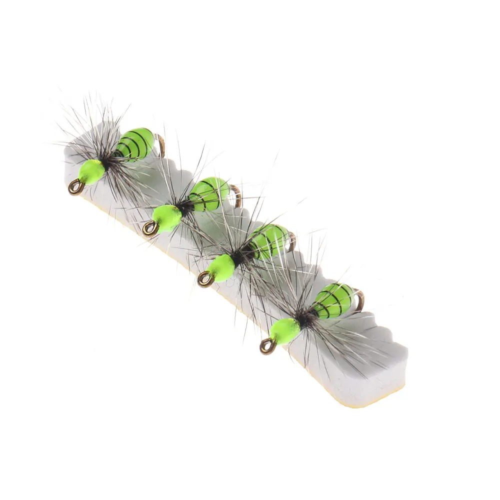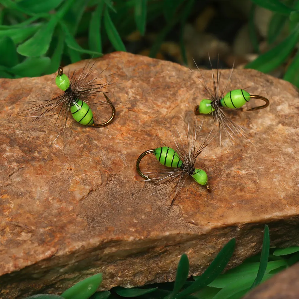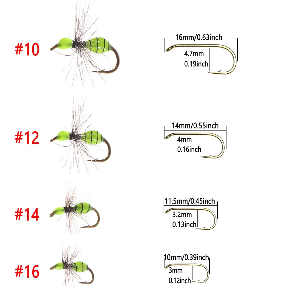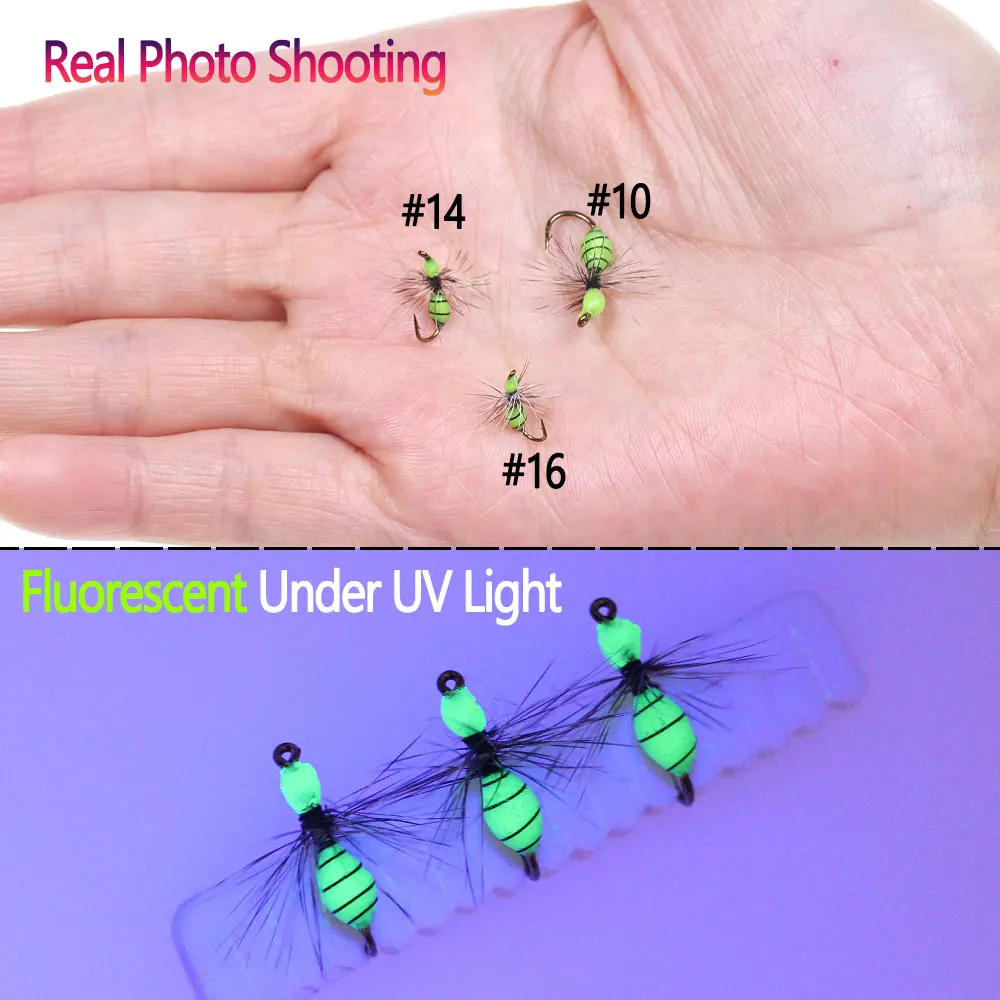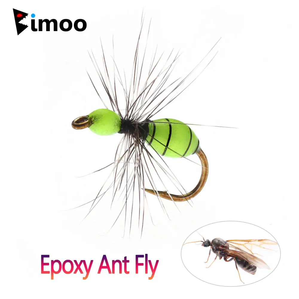 Bimoo 6 uds.#10~#16 Grizzly Hackle epoxi hormiga mosca ninfas fluorescentes mosca seca mosca terrestre para señuelos de pesca de trucha
