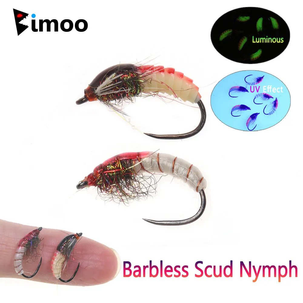 Bimoo Señuelo de Pesca de Ninfa Scud, Mosca de Gusano Caddis de Hundimiento Rápido, 6, N. ° 12, #12, Luminoso y UV