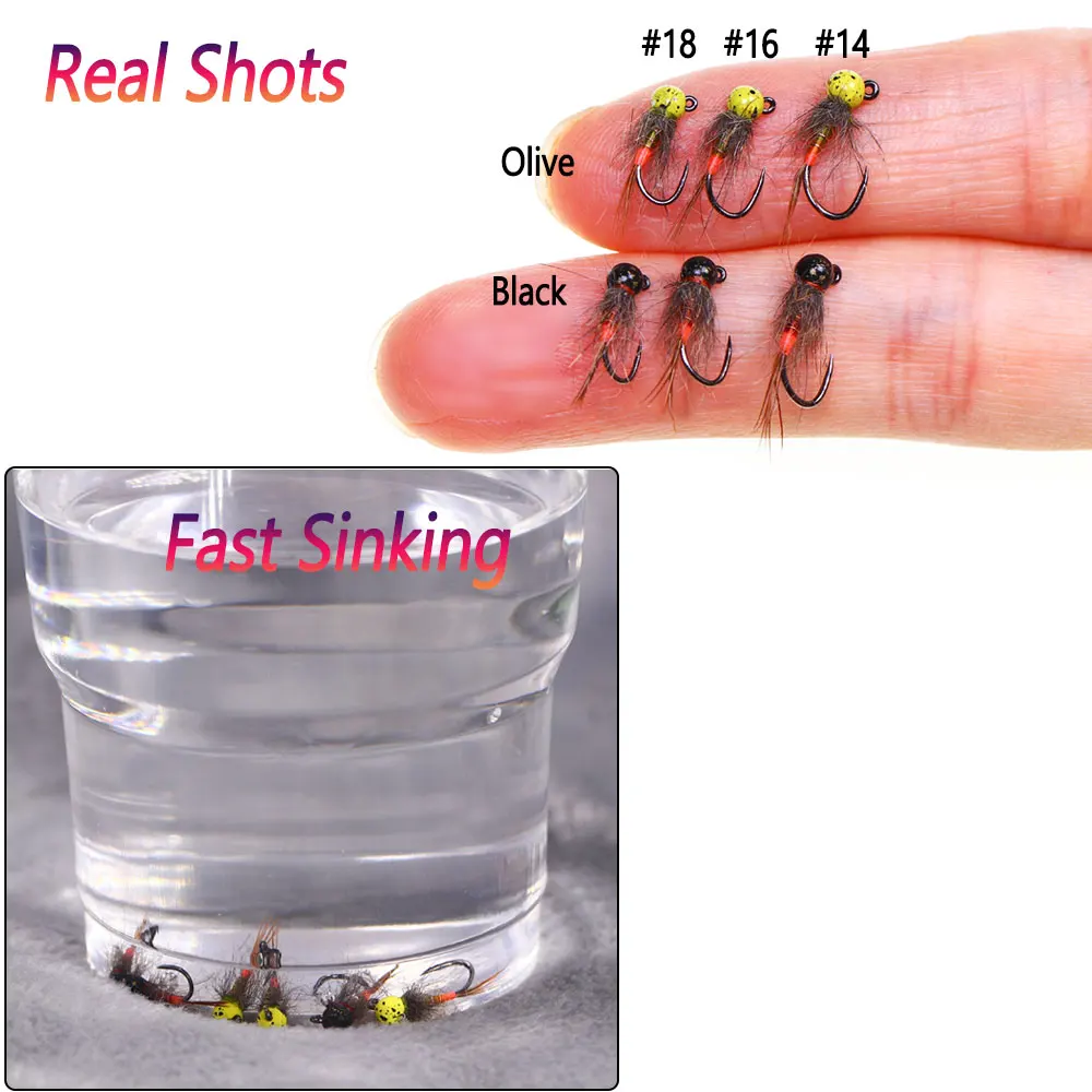 Bimoo 6 uds.#14#16#18 cabeza de cuentas moleteadas plantilla sin púas ninfa fregadero rápido Perdigon Euro húmedo ninfa trucha Señuelos de pesca mosca