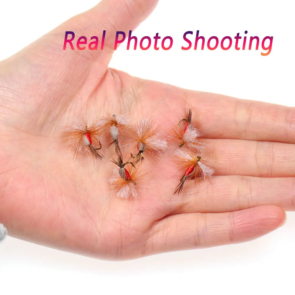 Bimoo 6PCS 14# Barb Brown Hackle Rojo Humpy Dry Fly Floating Fly Artificial May Fly Caddis Fly Grayling Truta Señuelos de pesca Cebo