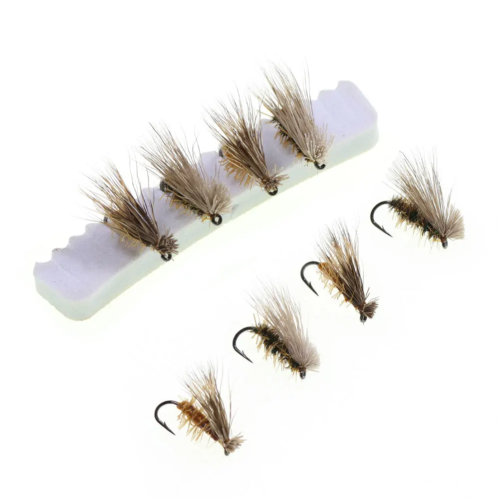 Bimoo 6 uds.#14 pelo de alce Caddis mosca ciervo pelo flotante Stonefly seco mosca trucha esmerilador Artificial Mayfly Grayling Señuelos de pesca