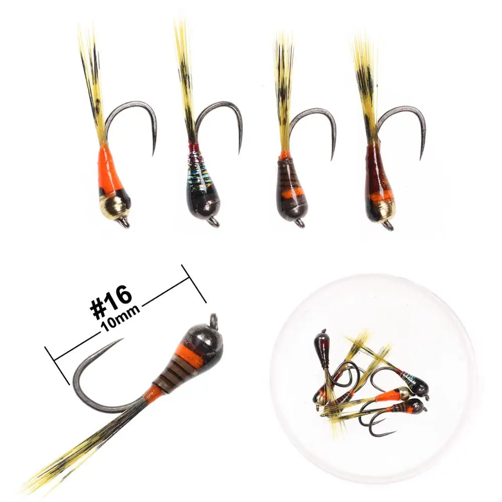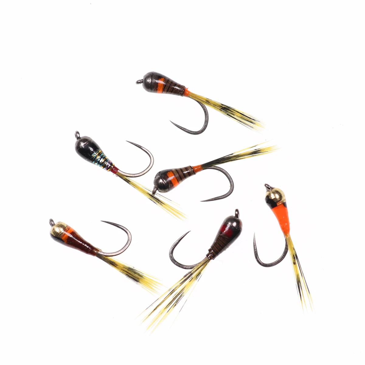 Ninfa Perdigon El Perdigon Nymph es perfecto para situaciones en las que necesita una mosca pequeña para hundirse rápidamente en aguas profundas o rápidas, o como parte de un equipo de secado/cuentagotas. Tamaño: #16 Atado con gancho sin púas de alta calidad Cabeza de cuentas de latón y tungsteno 6 piezas/caja pequeña