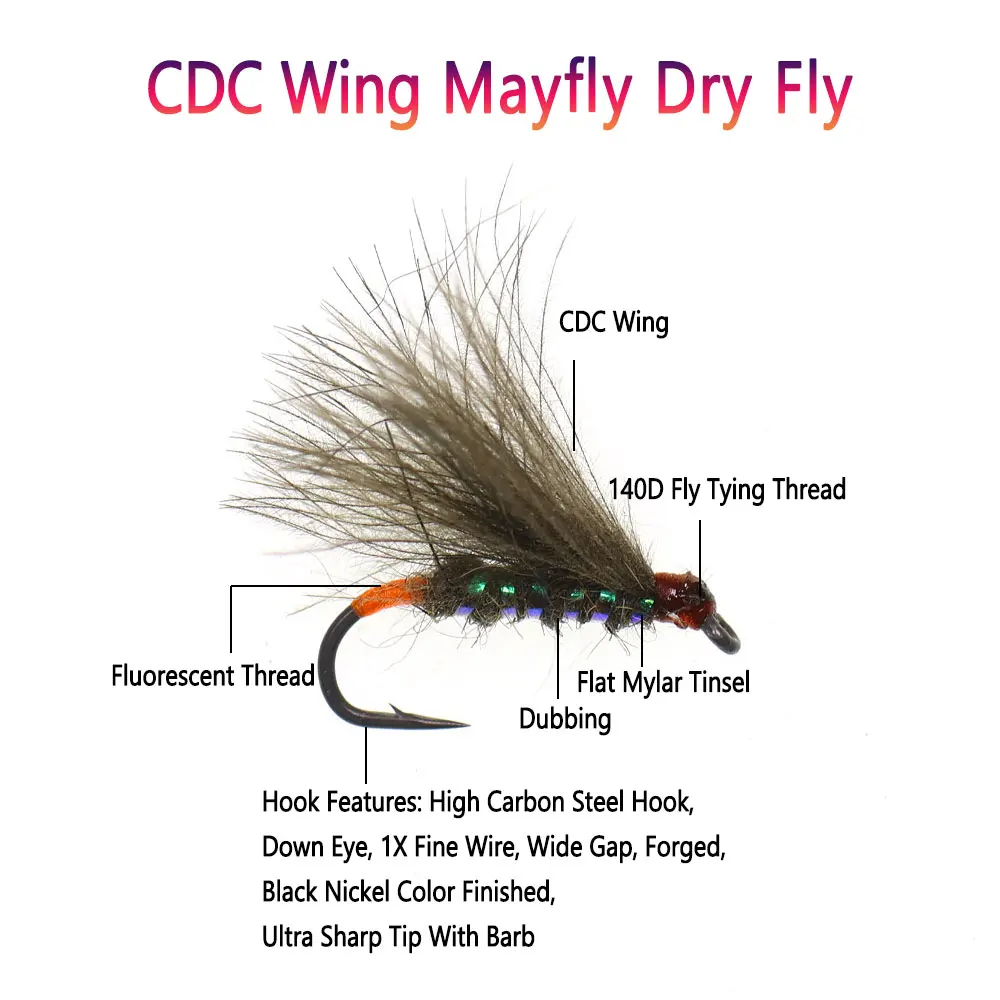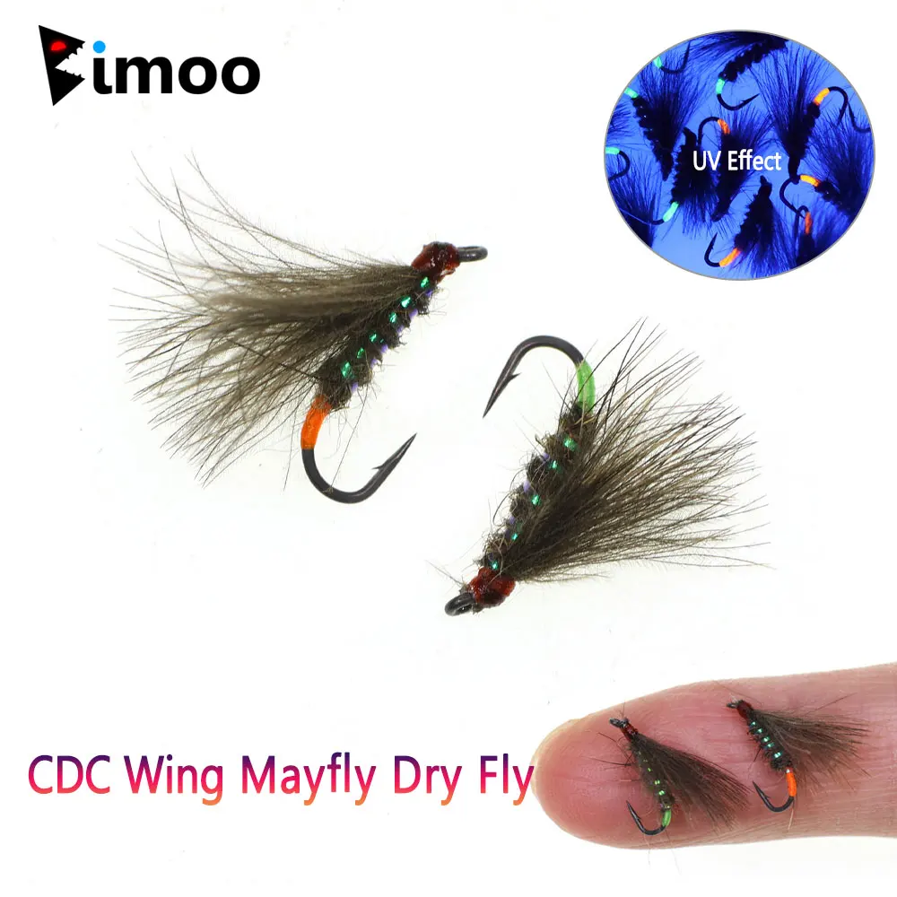 Bimoo 6PCS #16 CDC Wing Mayfly Dry Fly Flurescent Floating Barbed Emerger Dry Fly Trout Grayling Bluegill Fishing Lures Baits