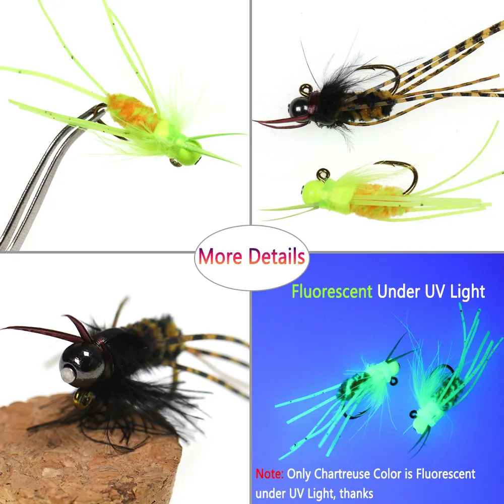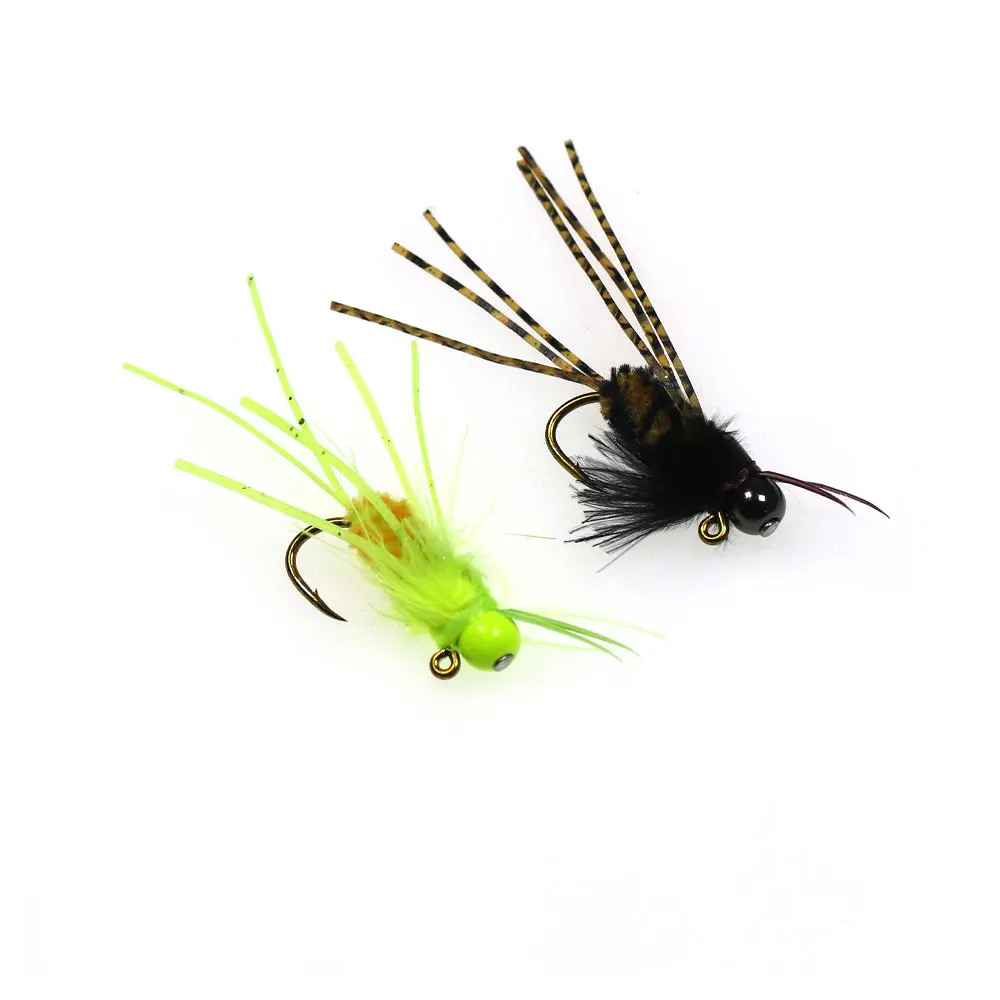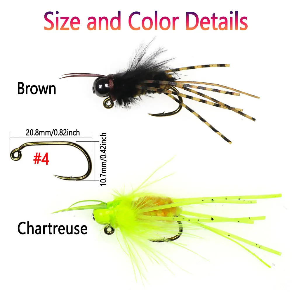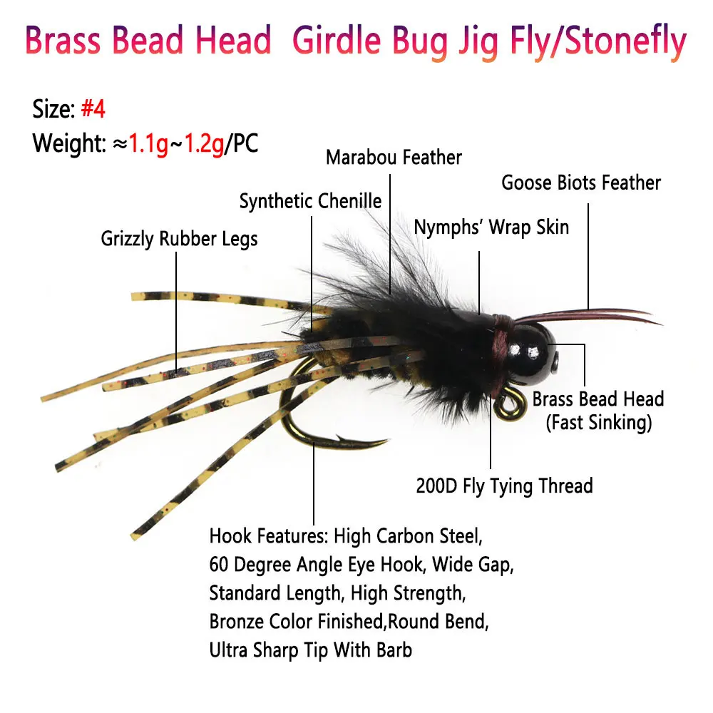 Bimoo 6 uds.#4 faja de cabeza de cuentas de latón, plantilla para insectos, patas de goma Grizzly, fregadero rápido, anzuelo de plantilla con púas, Señuelos de pesca de trucha mojada