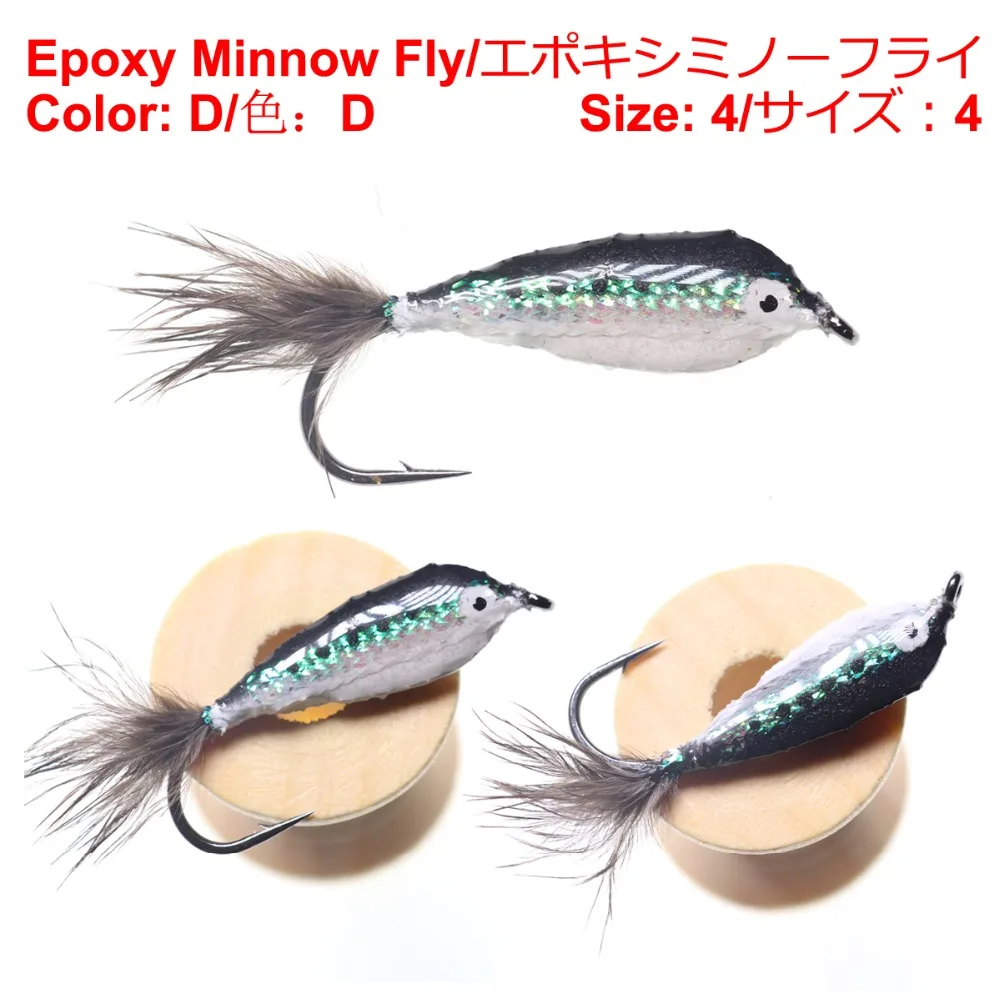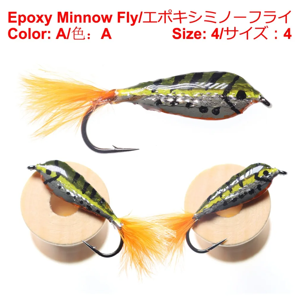 Bimoo 6 uds.#4 peces de cebo epoxi, pececillos, freír trucha, pesca con moscas, señuelos, serpentina para salmón, Lucio, arcoíris, trucha, Chub, perca