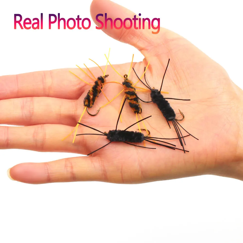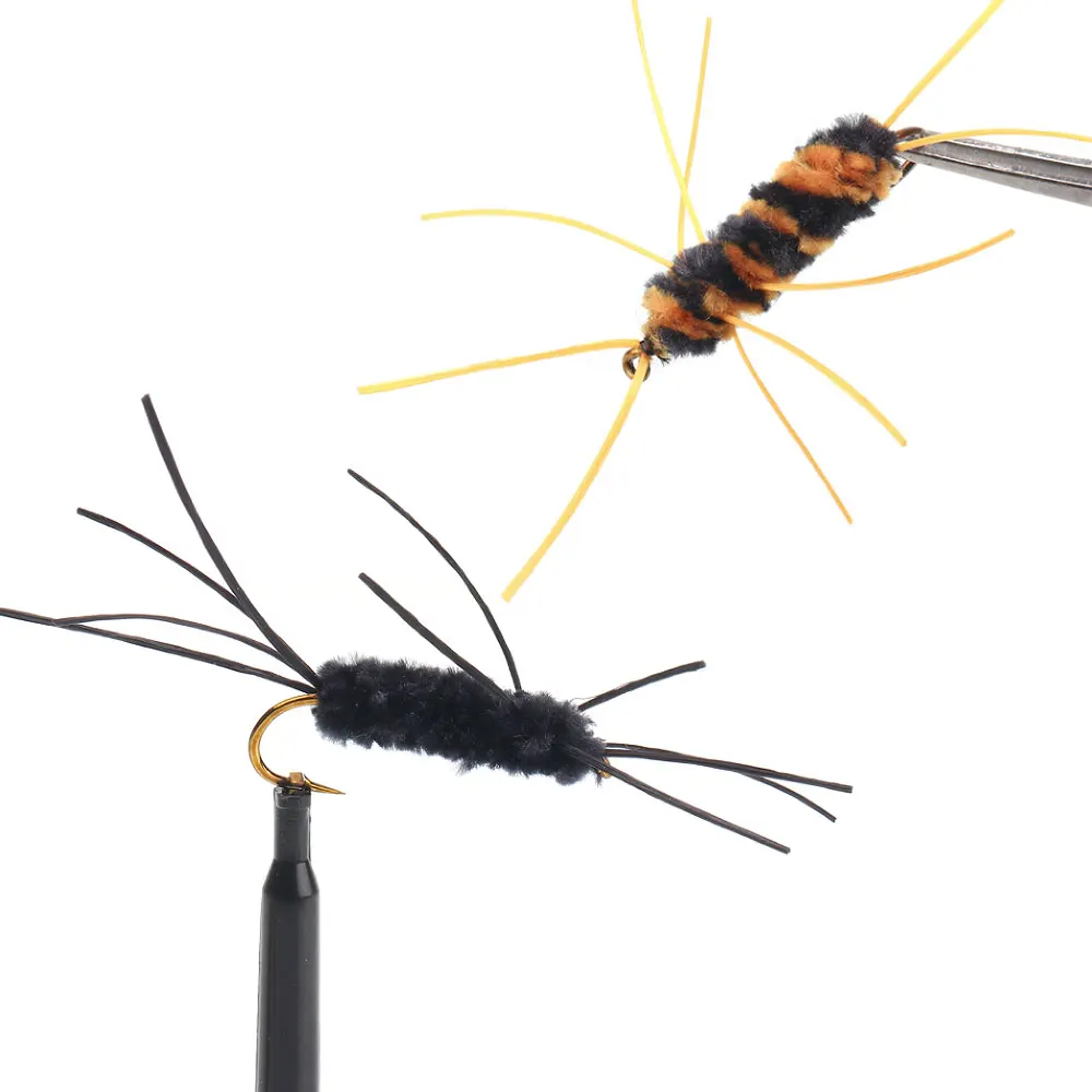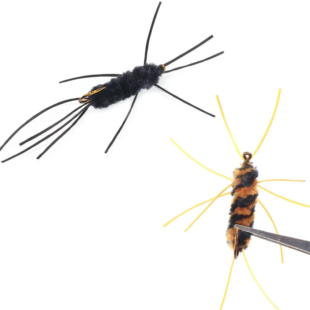 Bimoo 6 uds.#8 faja insecto ninfa patas de goma rockfly ninfa sintética chenilla gusano peludo mosca para pesca de trucha cebos