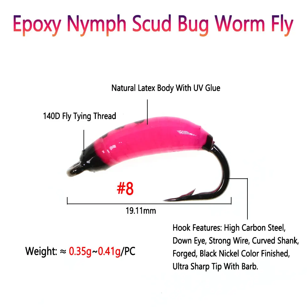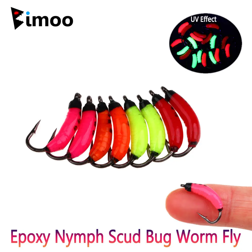 Bimoo 6 uds.#8 epoxicos Ninfa Scud Bug gusano moscas Caddis larvas Rocky río trucha lubina pesca moscas cebo Artificial para insectos