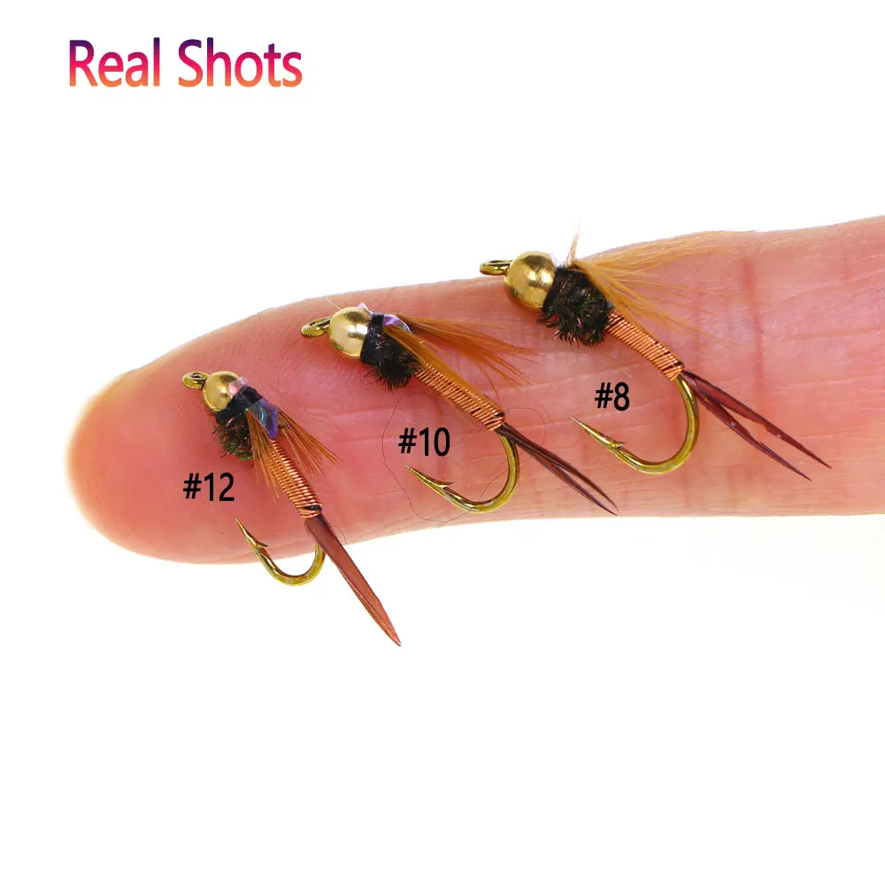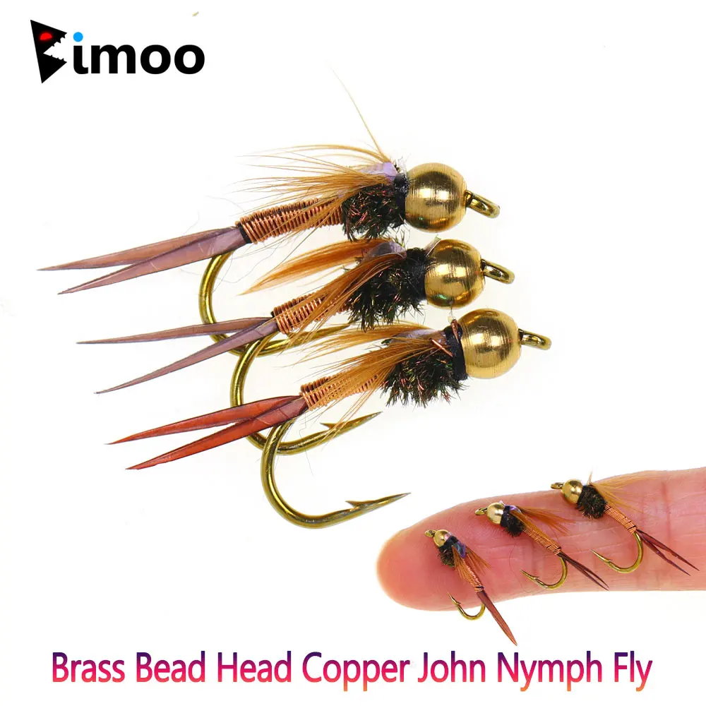Bimoo 6 uds.#8#10#12 cabeza de cuentas de latón cobre ninfa de John mosca hundimiento rápido ninfa húmeda para truta percha stehead señuelo de pesca con mosca