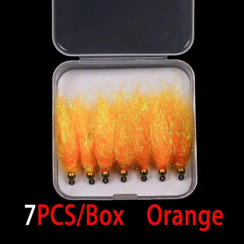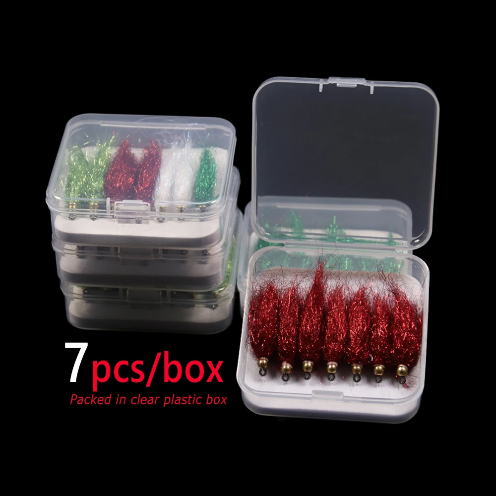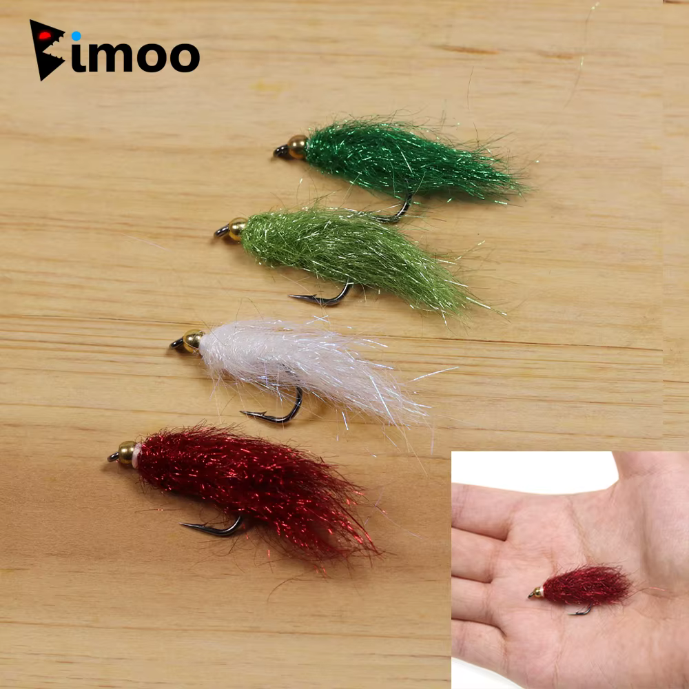 Bimoo 7PCS #4 Brass Beadhead Long Ice Dub Fiber Streamer Fly Baitfish Trout Salmon Steelhead Grayling Fishing Flies Bait Lures