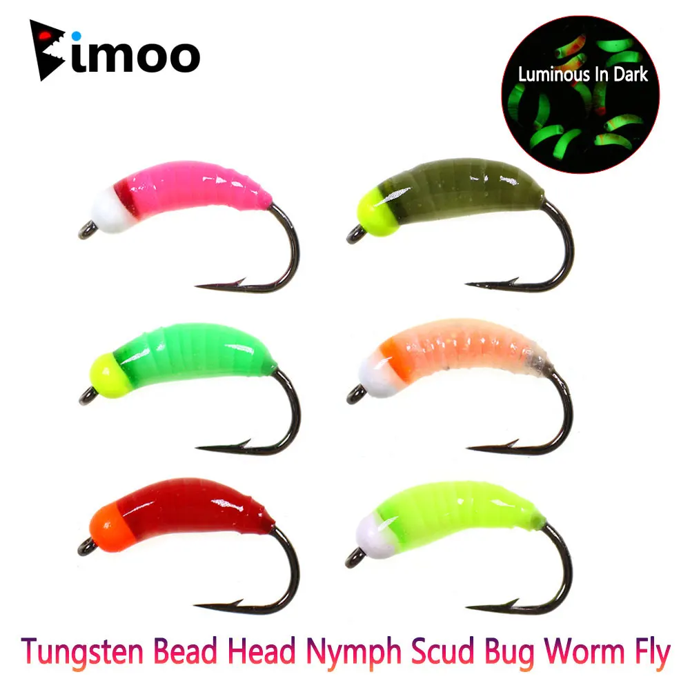 Bimoo#8 6 ~ 8 Uds. Cabeza luminosa de cuentas de tungsteno ninfa Scud Bug gusano mosca Caddis larvas cebos para insectos señuelo de pesca en hielo para trucha de hundimiento rápido