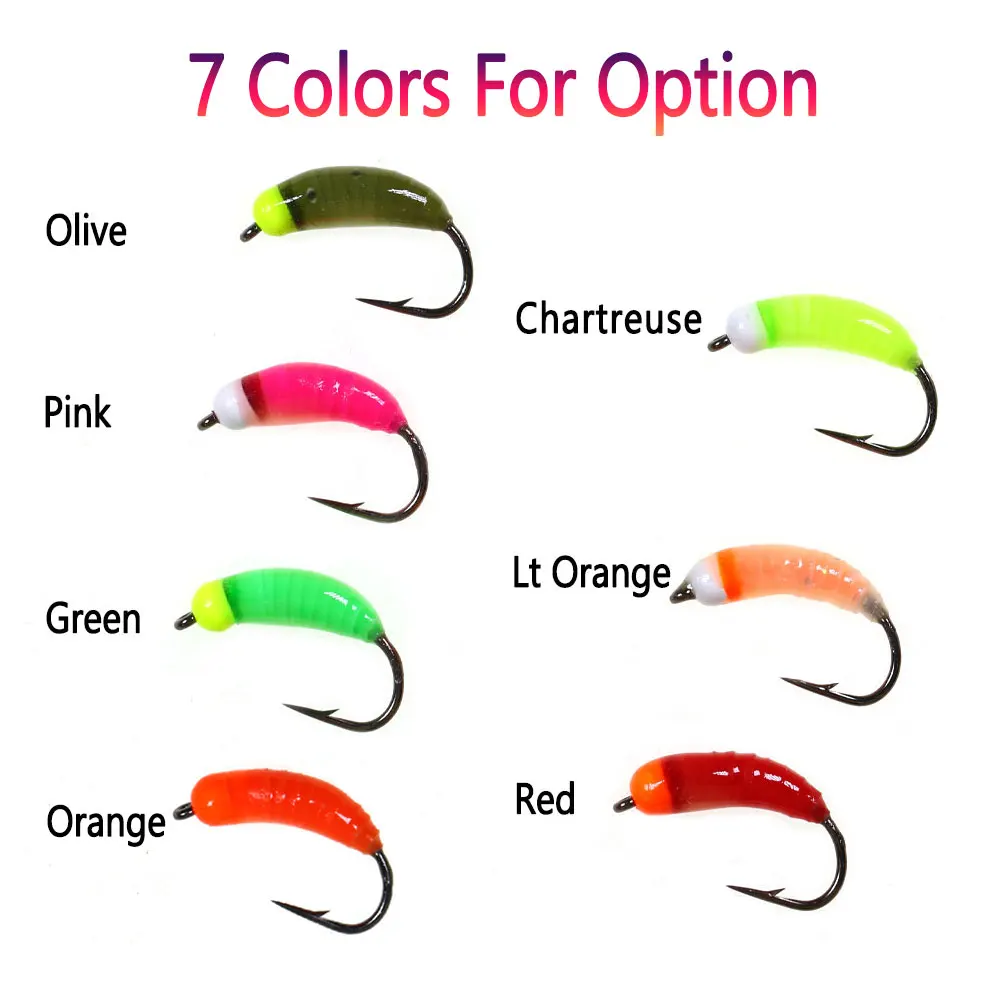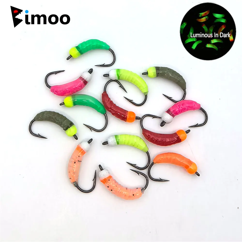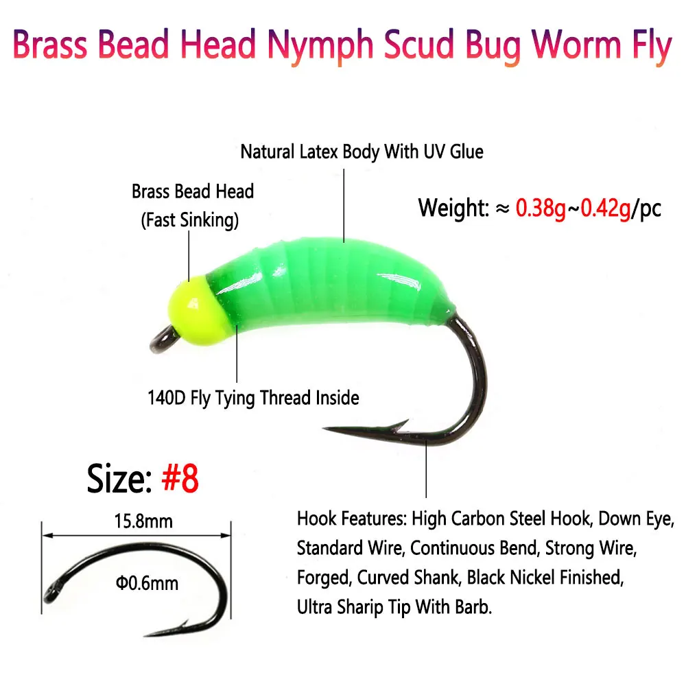 Bimoo#8 7/8 Uds. Cabezal de cuentas de latón luminoso Ninfa Scud Bug gusano mosca Caddis larvas cebos para insectos Señuelos de pesca en hielo para trucha de hundimiento rápido