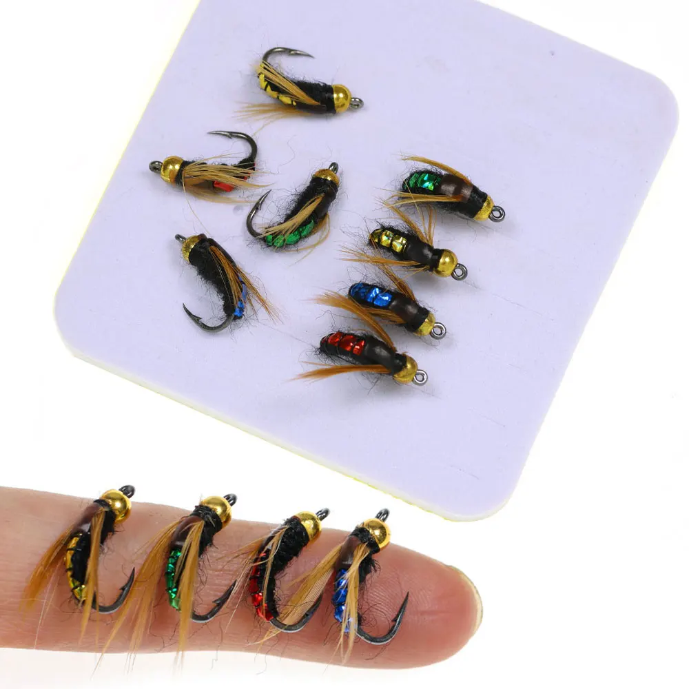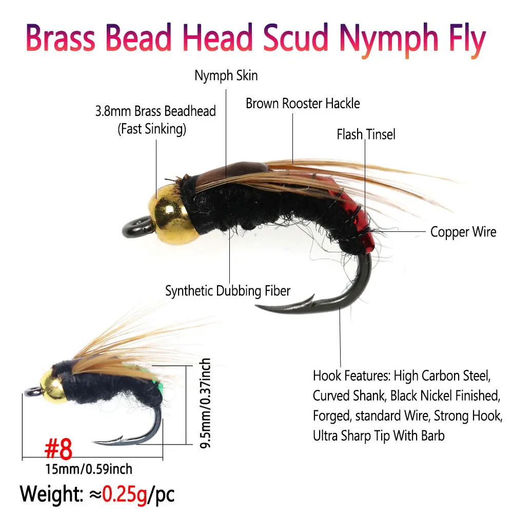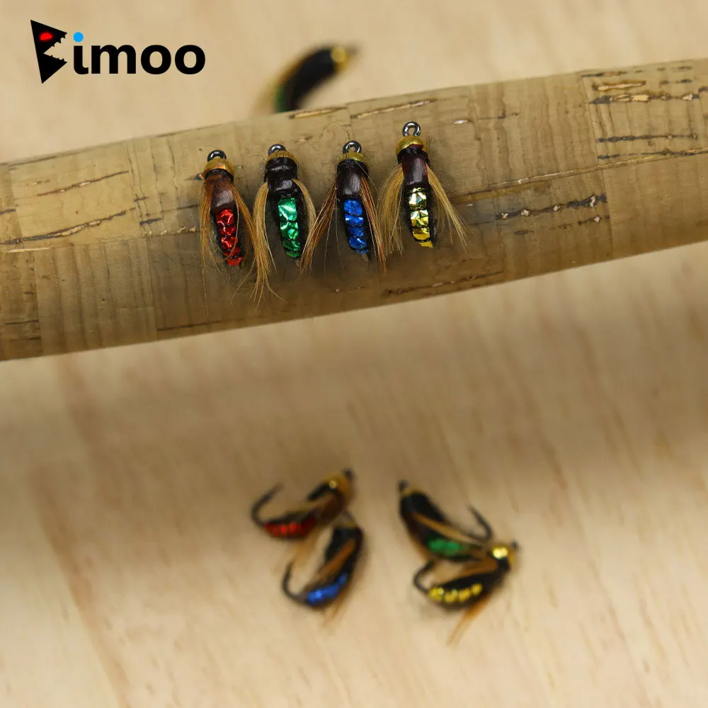Bimoo#8 8 Uds cabeza de cuentas de latón Scud Ninfa mosca marrón gallo Hackle Bug Worm hundimiento rápido moscas húmedas trucha Grayling Señuelos de pesca