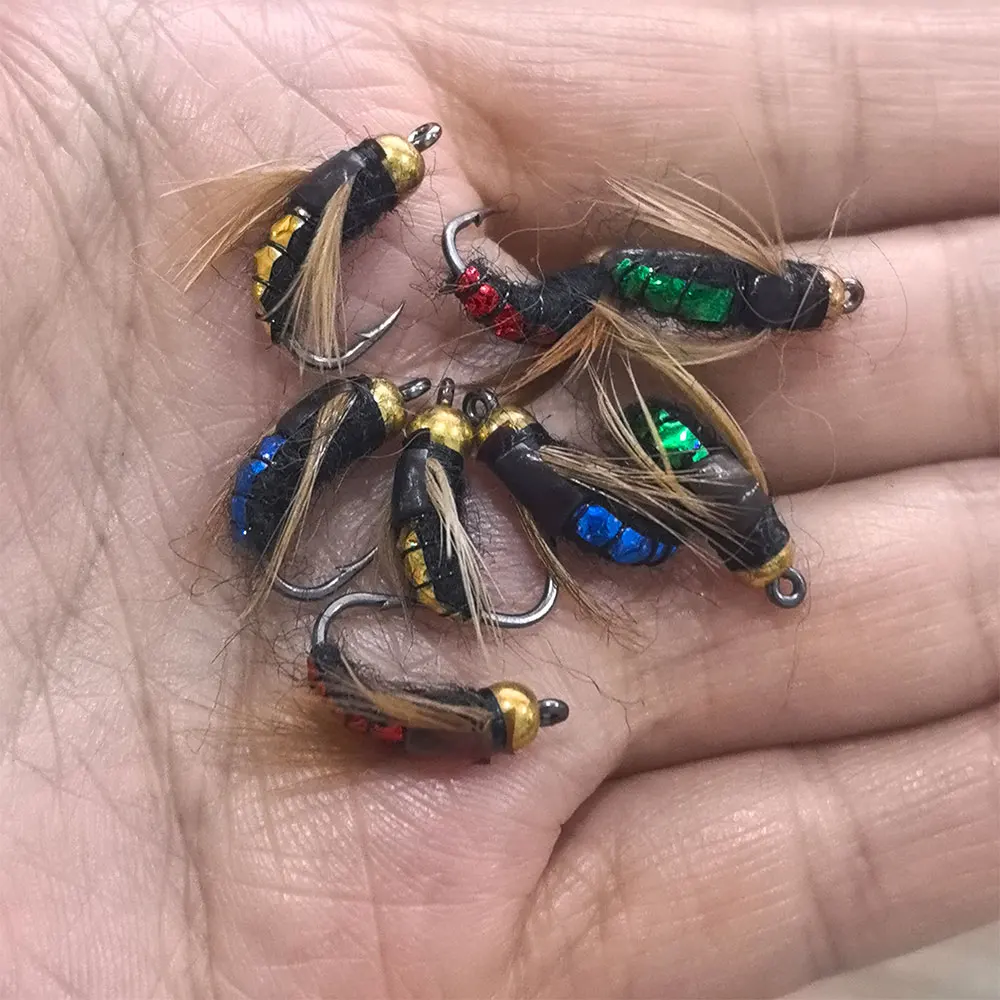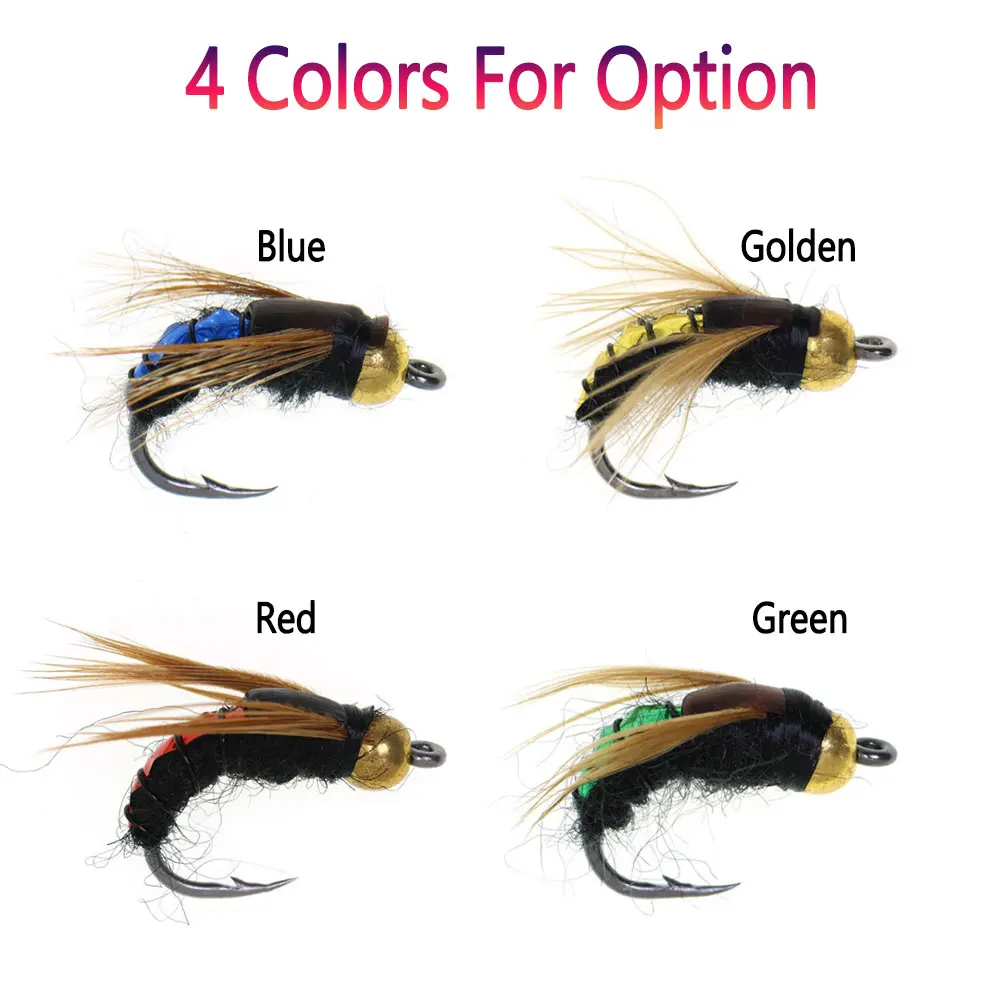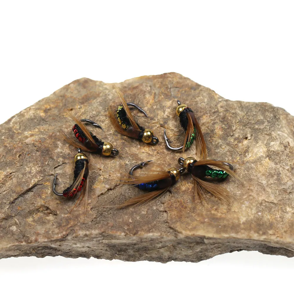 Mosca de ninfa curva con cabeza de cuentas de latón