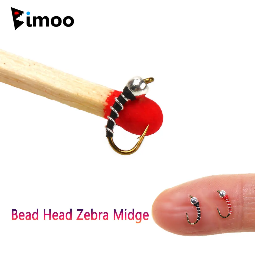 Bimoo 8 piezas#18 Caddies artificiales con cabeza de cuentas de latón, cebra Midge Fly, Pupa, gusanos emergentes para trucha, perca, señuelos de pesca, cebos