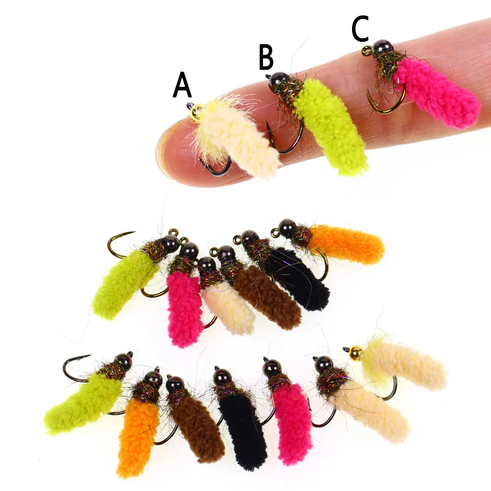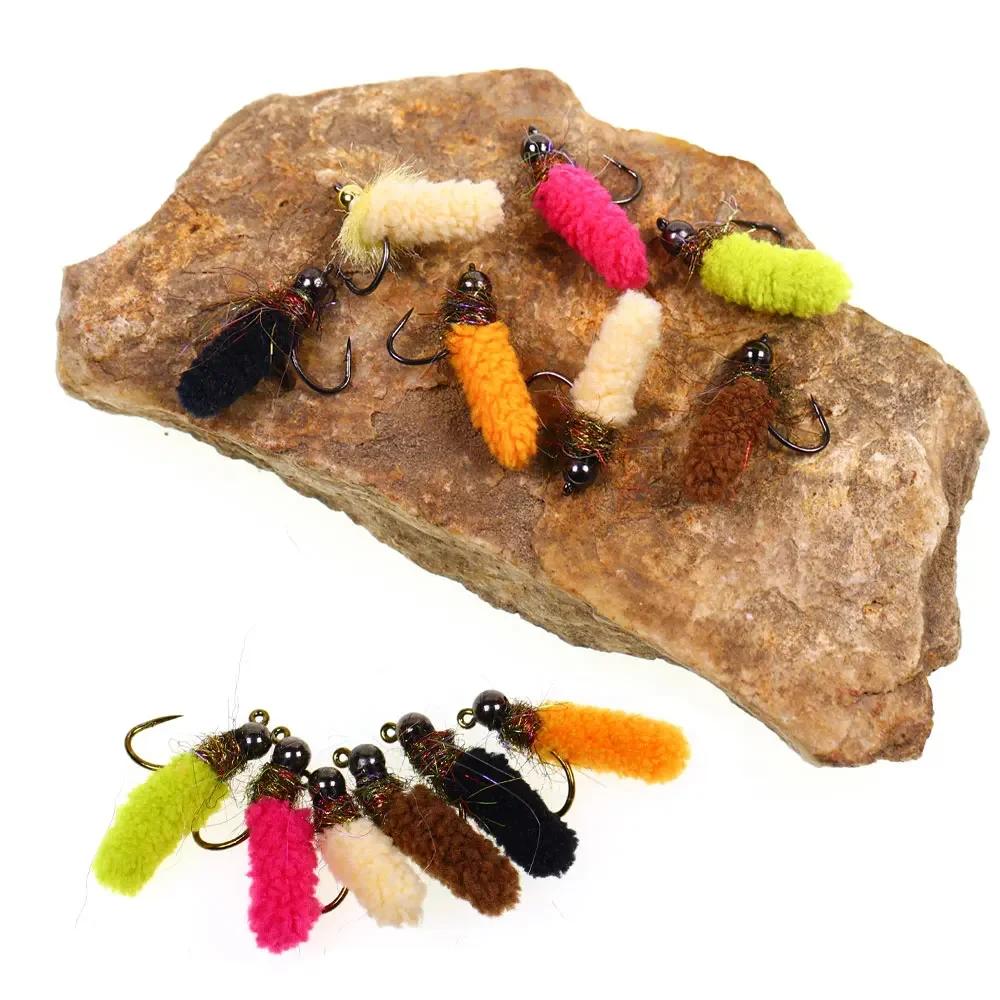 Bimoo 8 Uds latón/jig cabeza de cuentas fregona mosca grúa Artificial mosca Caddis larva jig húmedo ninfa mosca trucha Grayling Señuelos de pesca