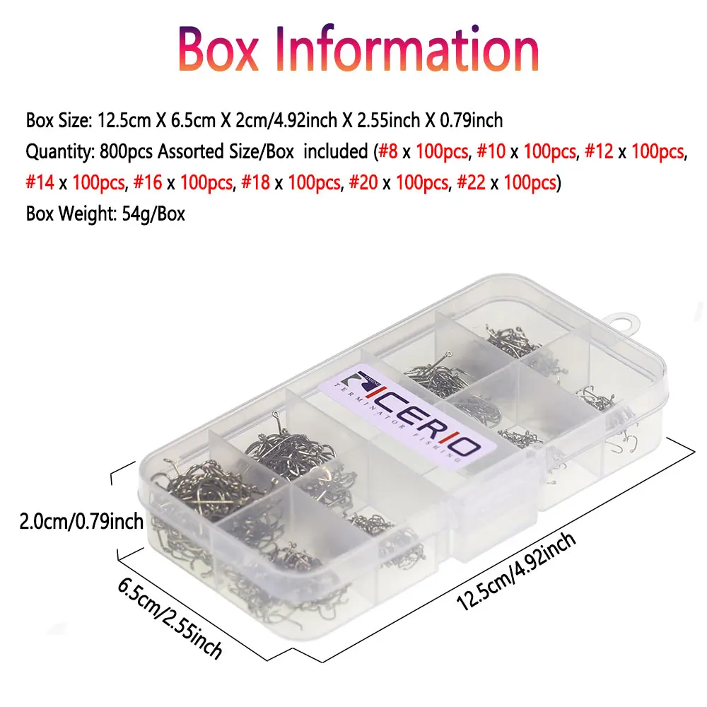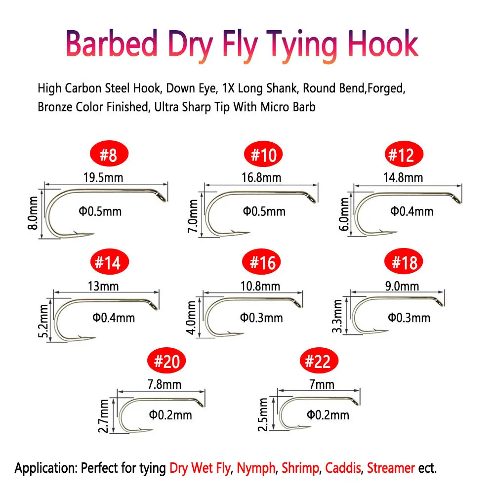 Bimoo 800 unids/caja tamaño surtido de acero de alto carbono anzuelo para atar moscas secas para moscas secas Adams Caddis ninfas Señuelos de Pesca de trucha