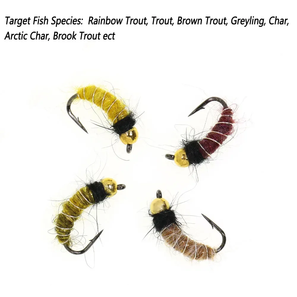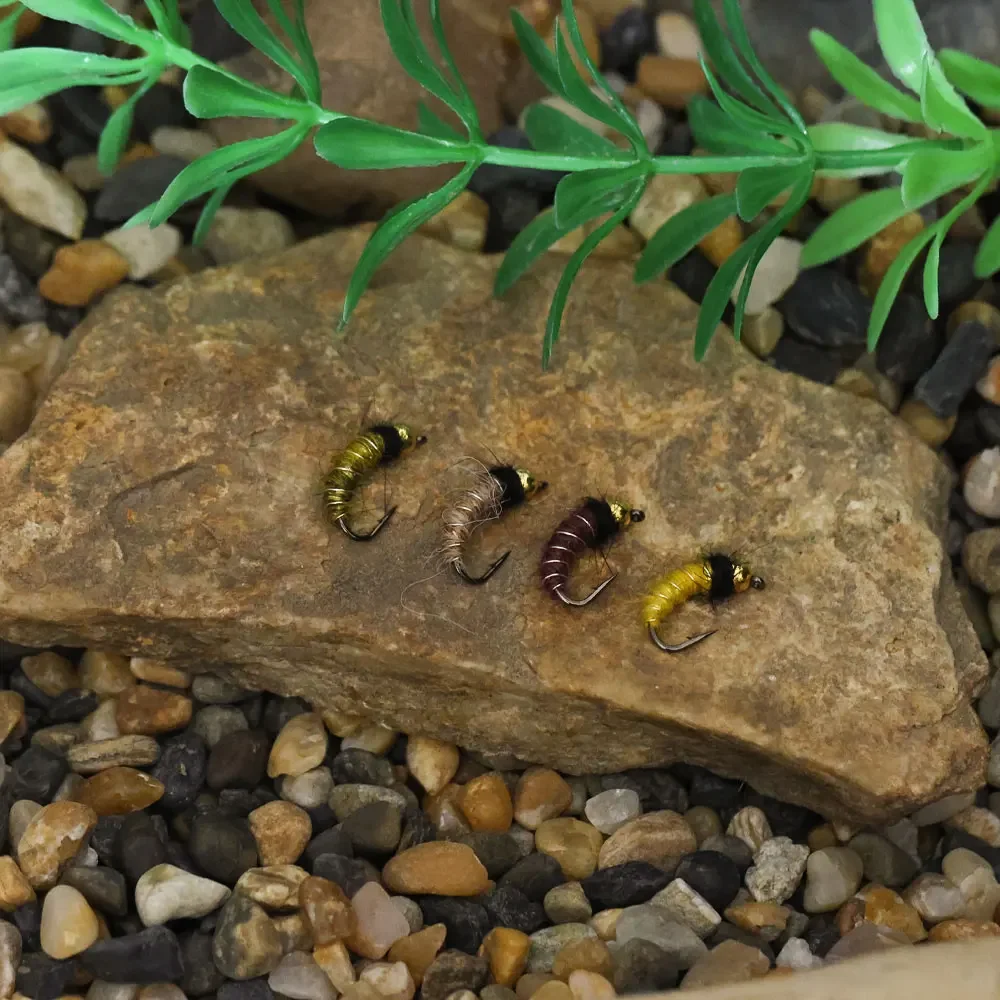Bimoo 8PCS#10#12 Cabeza de cuentas de latón Scud Ninfa mosca hundimiento rápido moscas húmedas gusano de insectos aritificial para señuelos de pesca de trucha Grayling