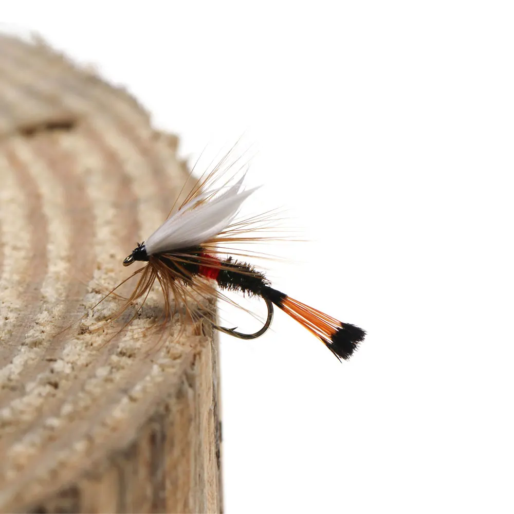 The Royal coachman is an excellent general purpose up-winged dry fly that can be used to represent many other large winged insects as well as may flies. It is an ideal wasp, hornet or bee pattern. Treat with floatant and fish it on the surface. Try the occasional retrieve over the surface for a short distance or else twitch it to represent a struggling terrestrial insect like a wasp or bee trapped in the surface film.