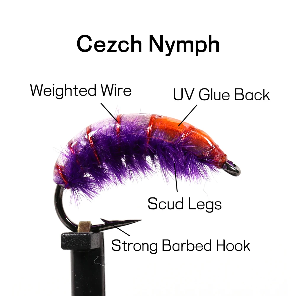 Bimoo 9 Uds. #10 Cezch Nymphs trucha señuelo de pesca pesando Scud Bug gusano mosca púrpura naranja blanco