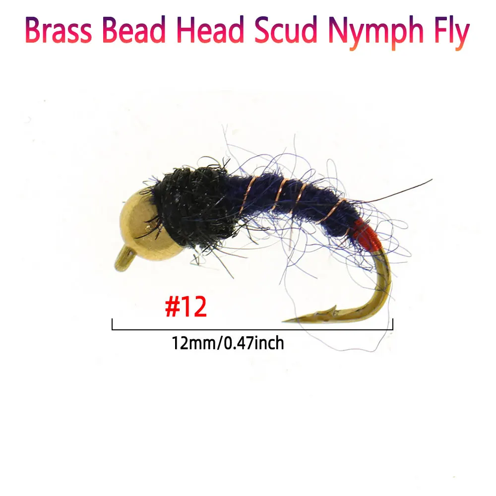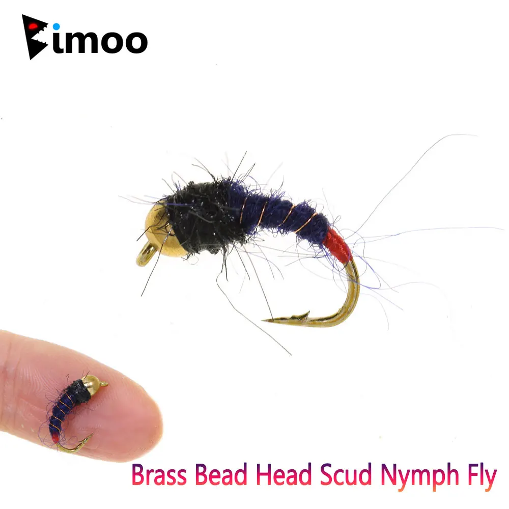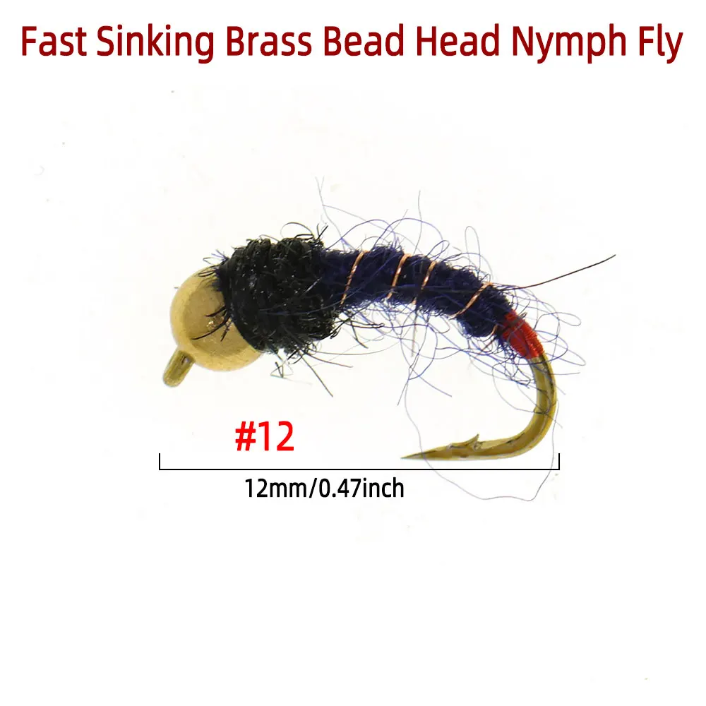 Bimoo 8PCS#12 cabeza de cuentas de latón de hundimiento rápido Scud Ninfa mosca Artificial gusano de insectos moscas húmedas trucha panfish Señuelos de pesca negro azul