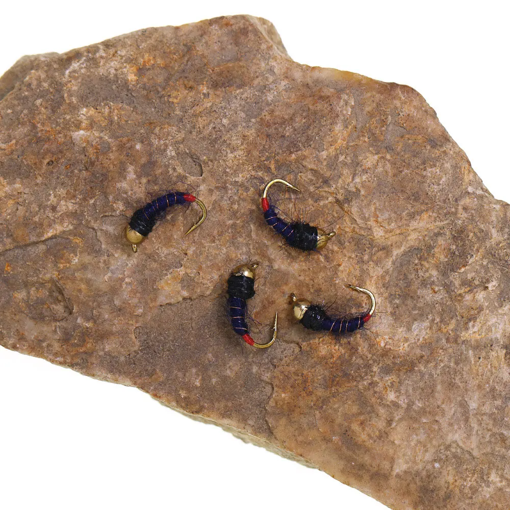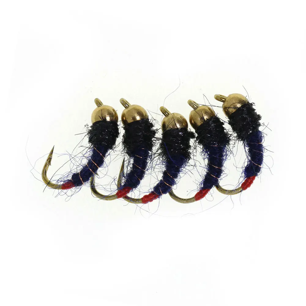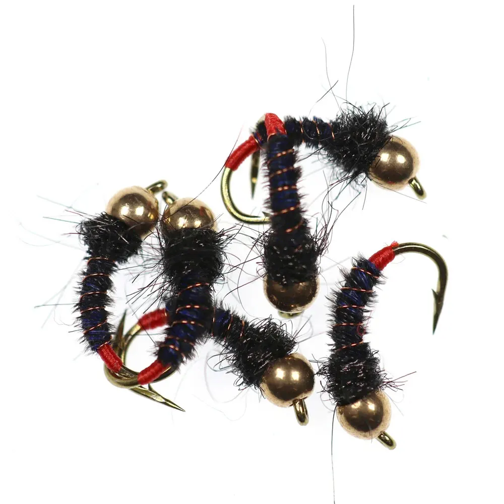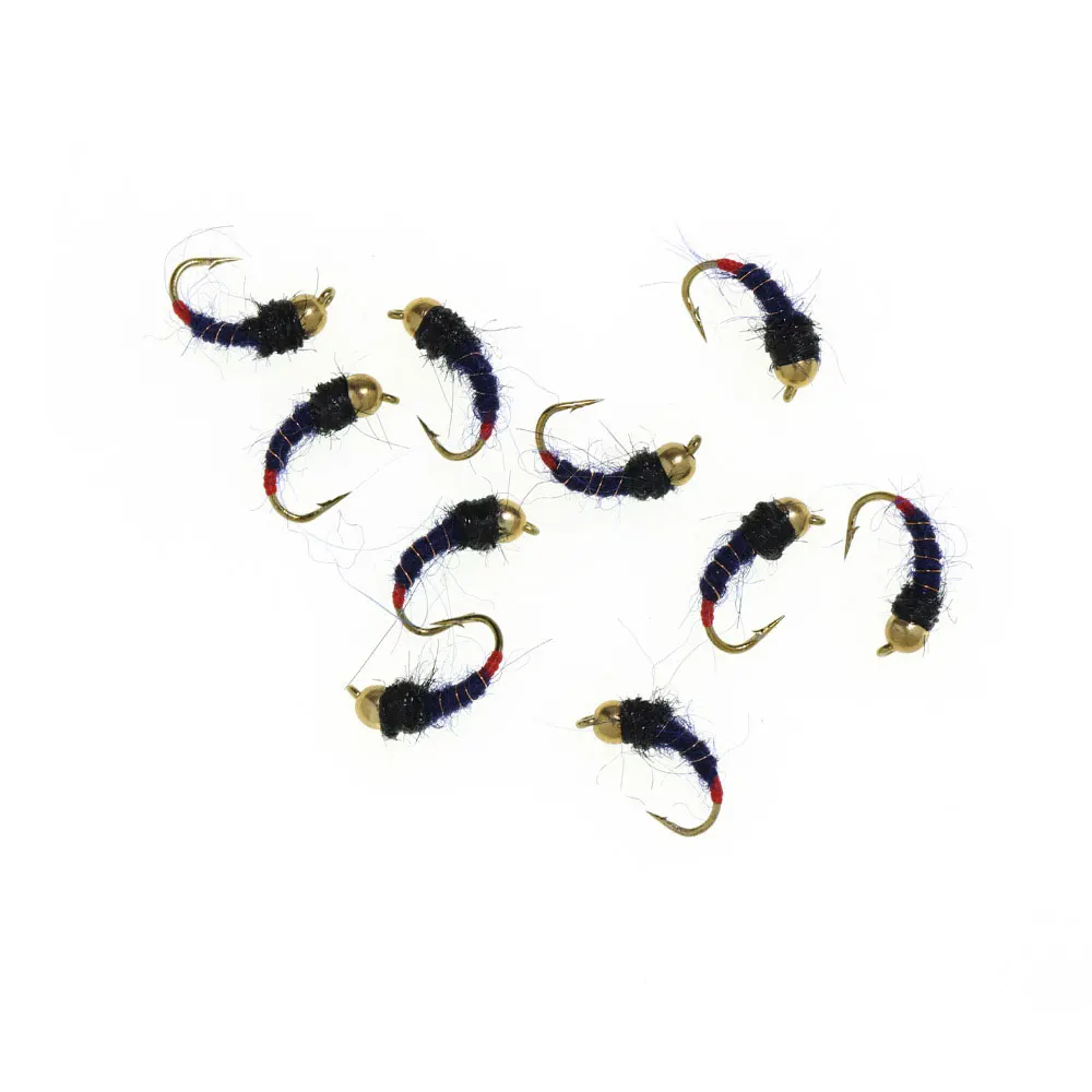 Bimoo 8PCS#12 cabeza de cuentas de latón de hundimiento rápido Scud Ninfa mosca Artificial gusano de insectos moscas húmedas trucha panfish Señuelos de pesca negro azul